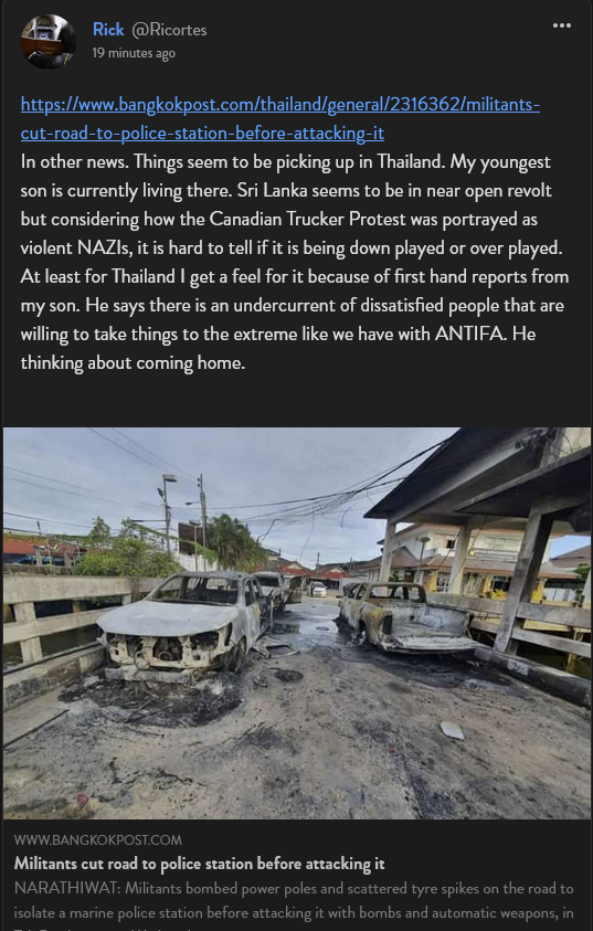 Are these freedom fighters fighting government or something else? I didn’t know Thailand was revolting.