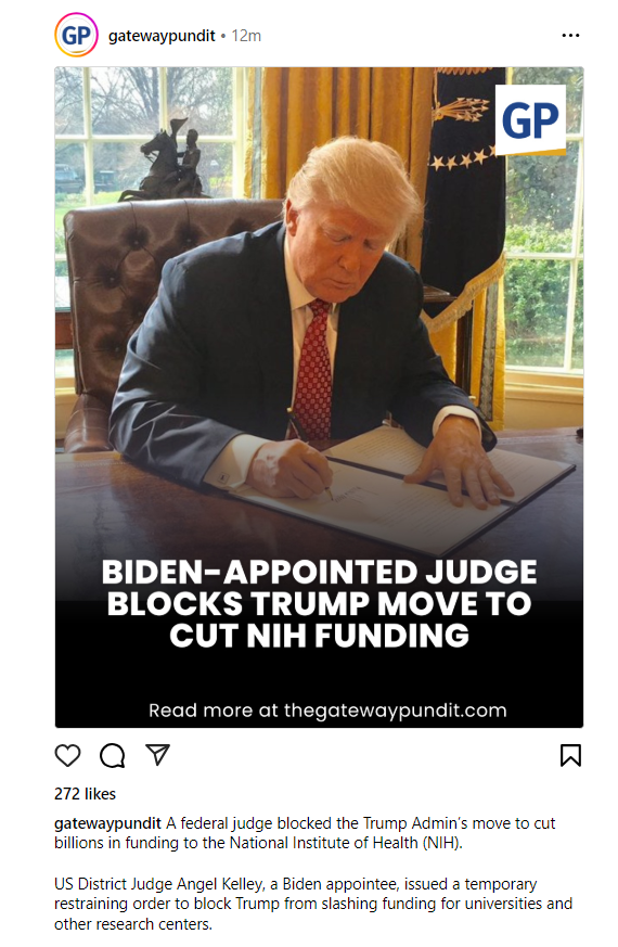 Well, he has full authority in the executive branch, of course checked and balanced with the other branches. Nih reports to HHS and both of which are in the executive branch. A workaround it perhaps to decline funding instead of cut funding? Cutting funding runs into congress but you could always say thanks but no thanks, right? Lol..