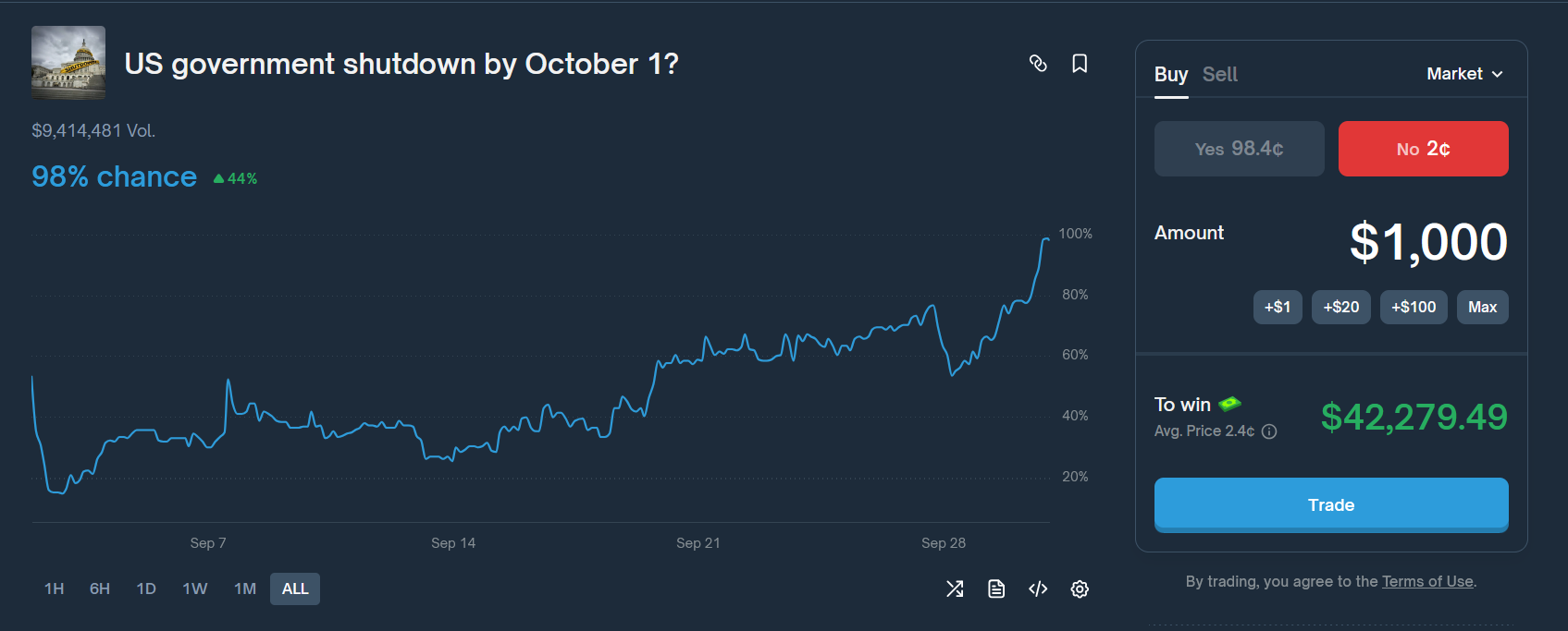 Will resolve as "no" if they strike a deal in the morning before the official OPM announcement. 2 minutes to go, ladies. New vehicle and a rifle is only a click away...