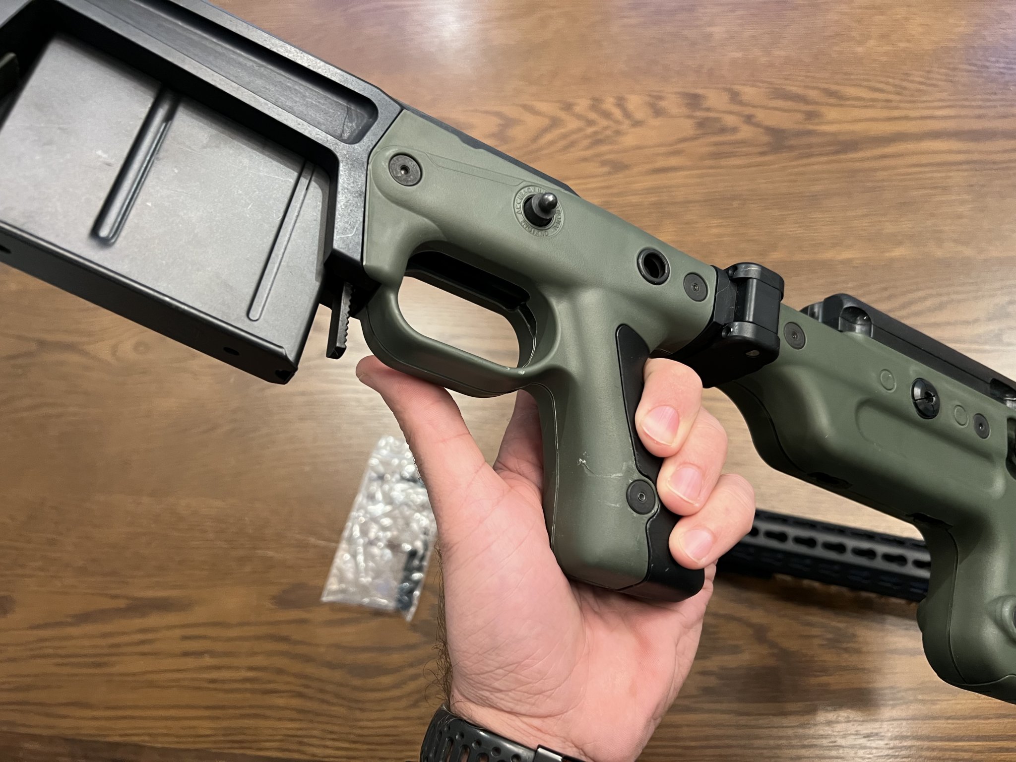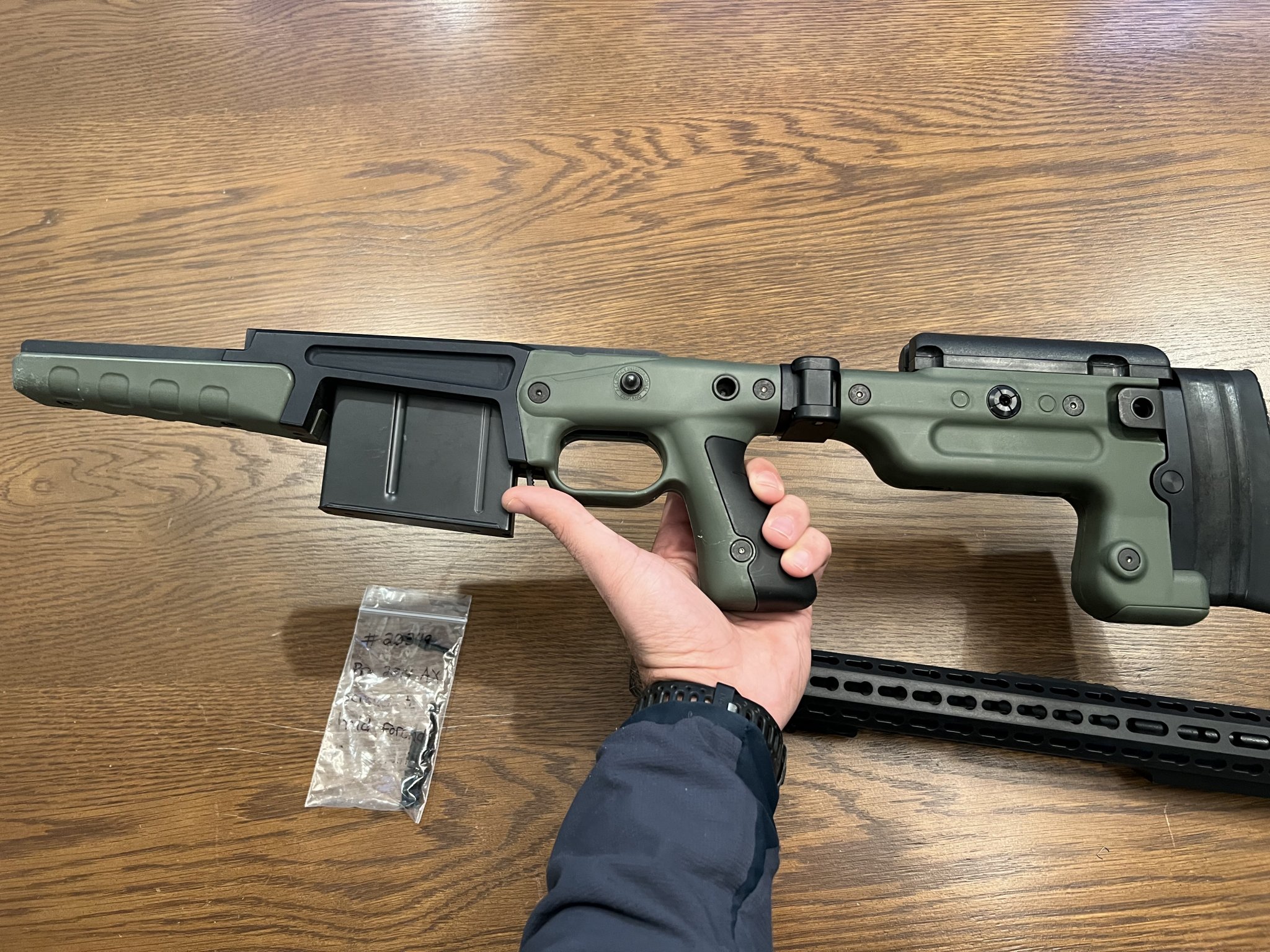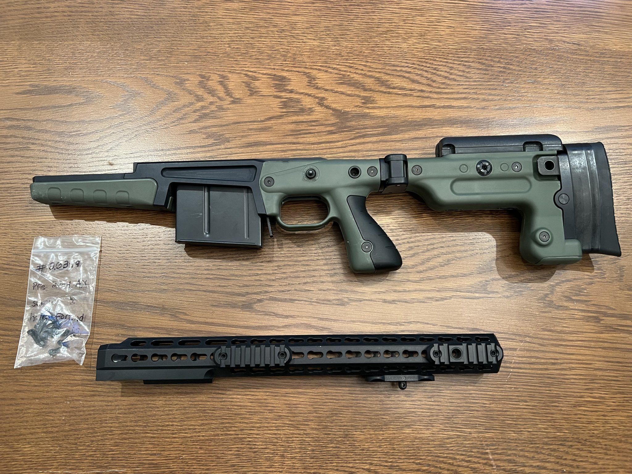Pre-2014 AX AICS .338 Lapua Mag, Accuracy International long action folder chassis in green. Never used, no action mounted. Small scratches on grip. PM me for more pictures or questions. Asking $850.