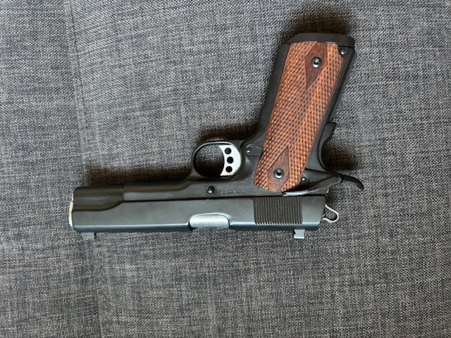 Preban Norinco 1911 Custom. The slide and frame are made of 5100 steel which is much tougher and wears far better than the 4140 steel used by most US Manufactures. The 5100 is also far harder on tooling. You won’t find better than 5100 for a super pistol