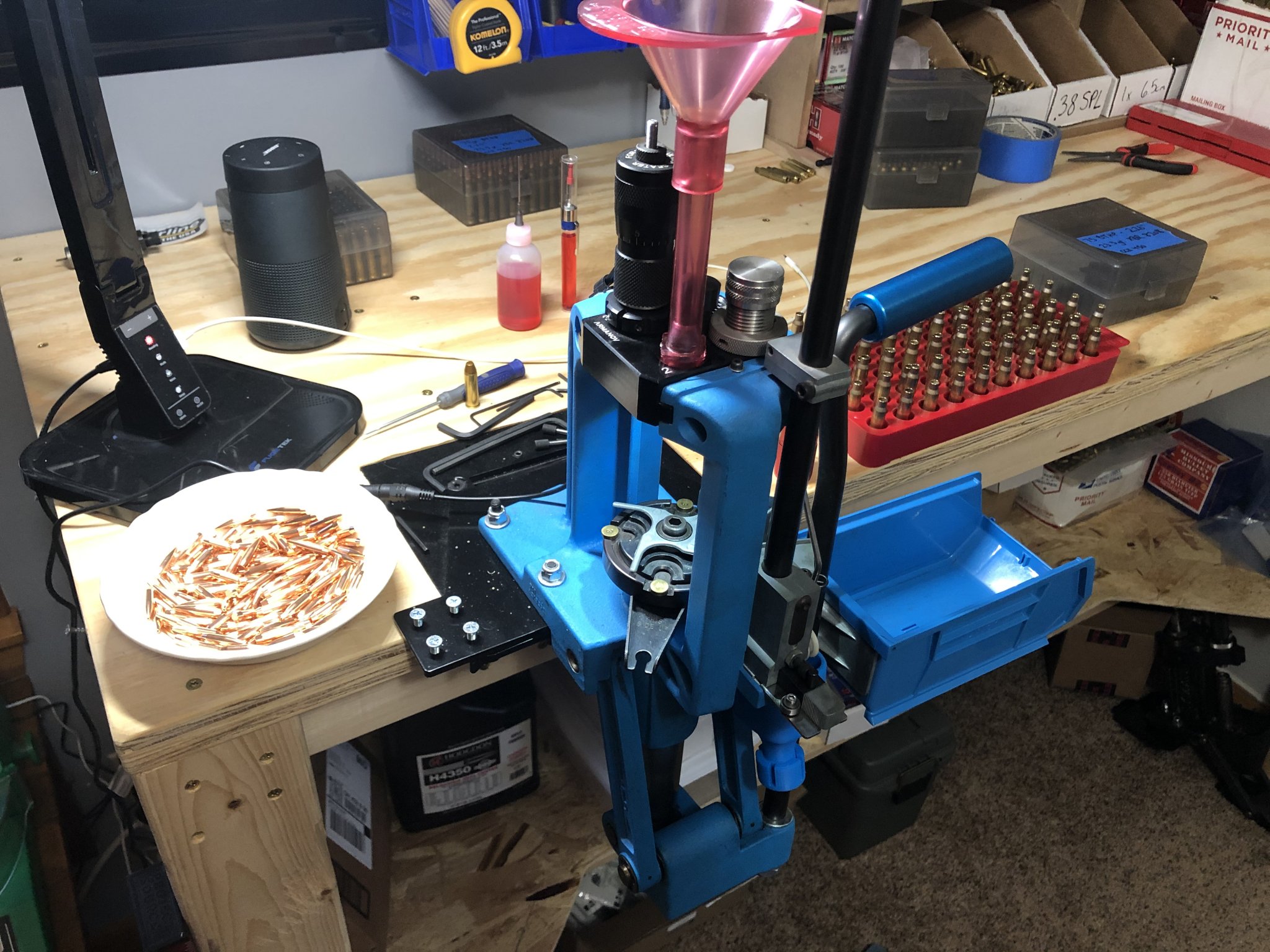 @Gustav7 one powder measure is for .223 and the other is for 9mm. For any precision loads, I will hand drop on the press. Which it looks like you don't even use a die for?