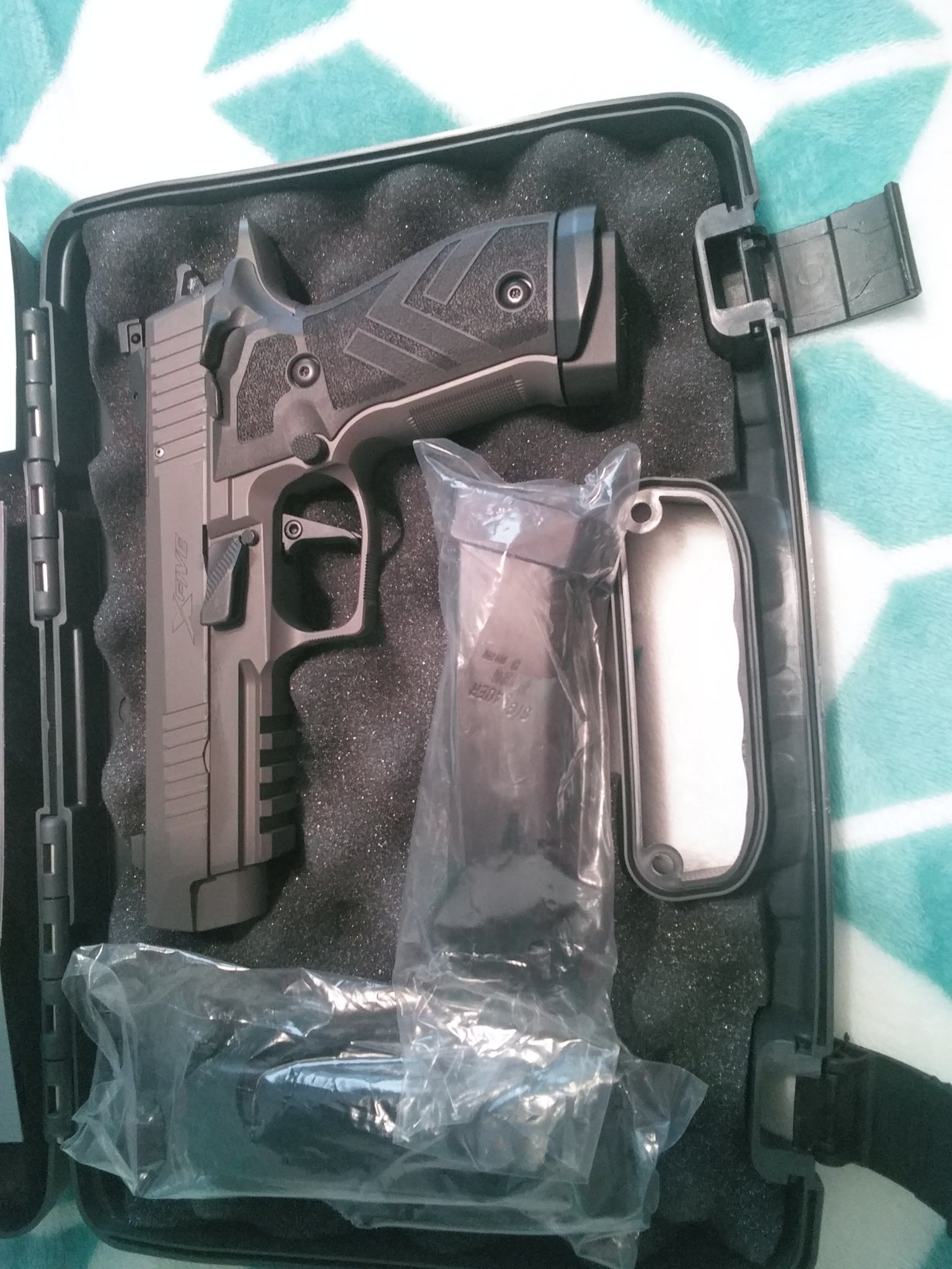 As the title says, brand new in box with 3 magazine's. Holds 21 rounds with 1 in the chamber 9mm. I am the original owner bought new. Never put a round in the chamber. It will come with everything that came with it new. Paid out the door 2350.00