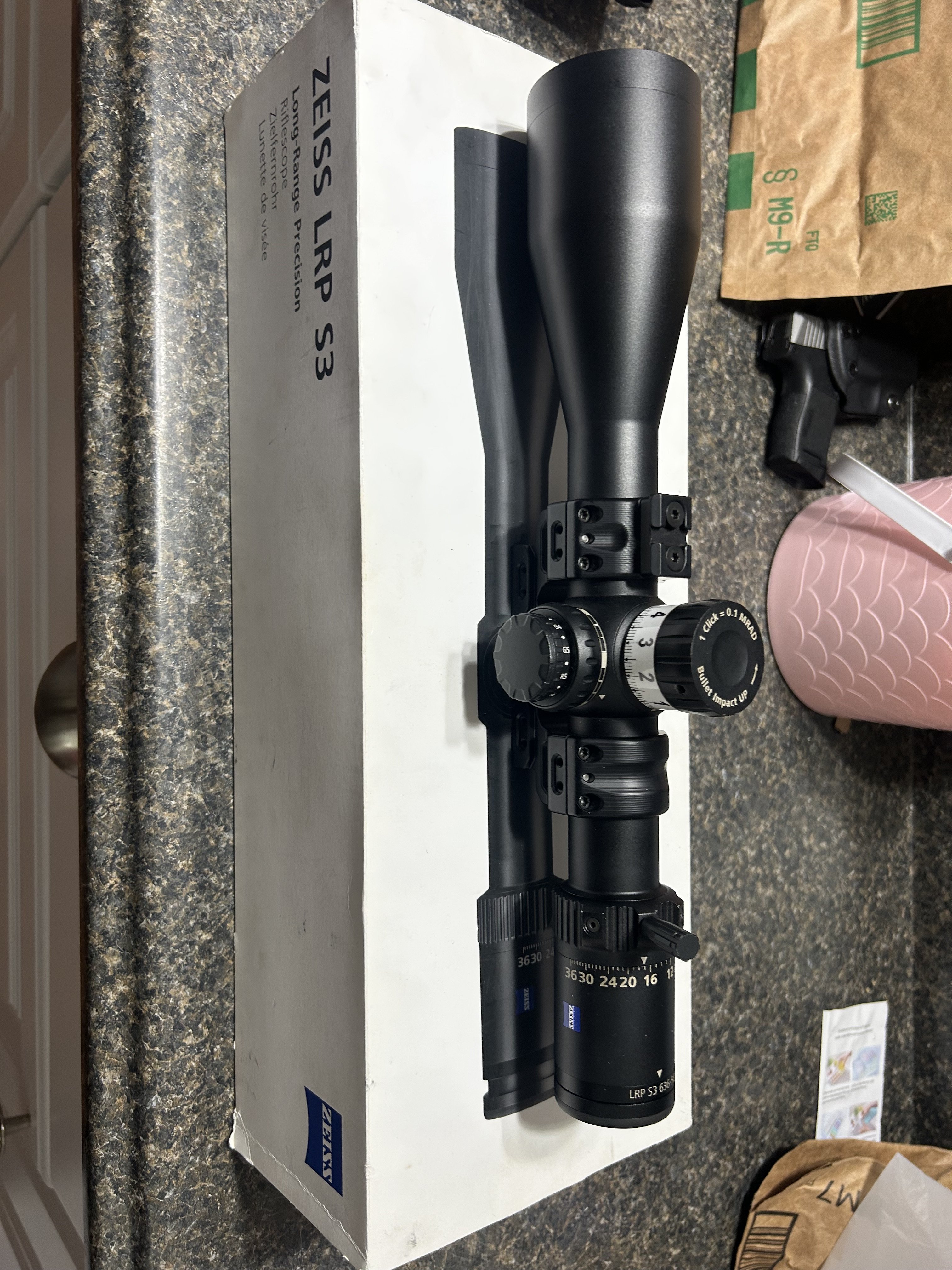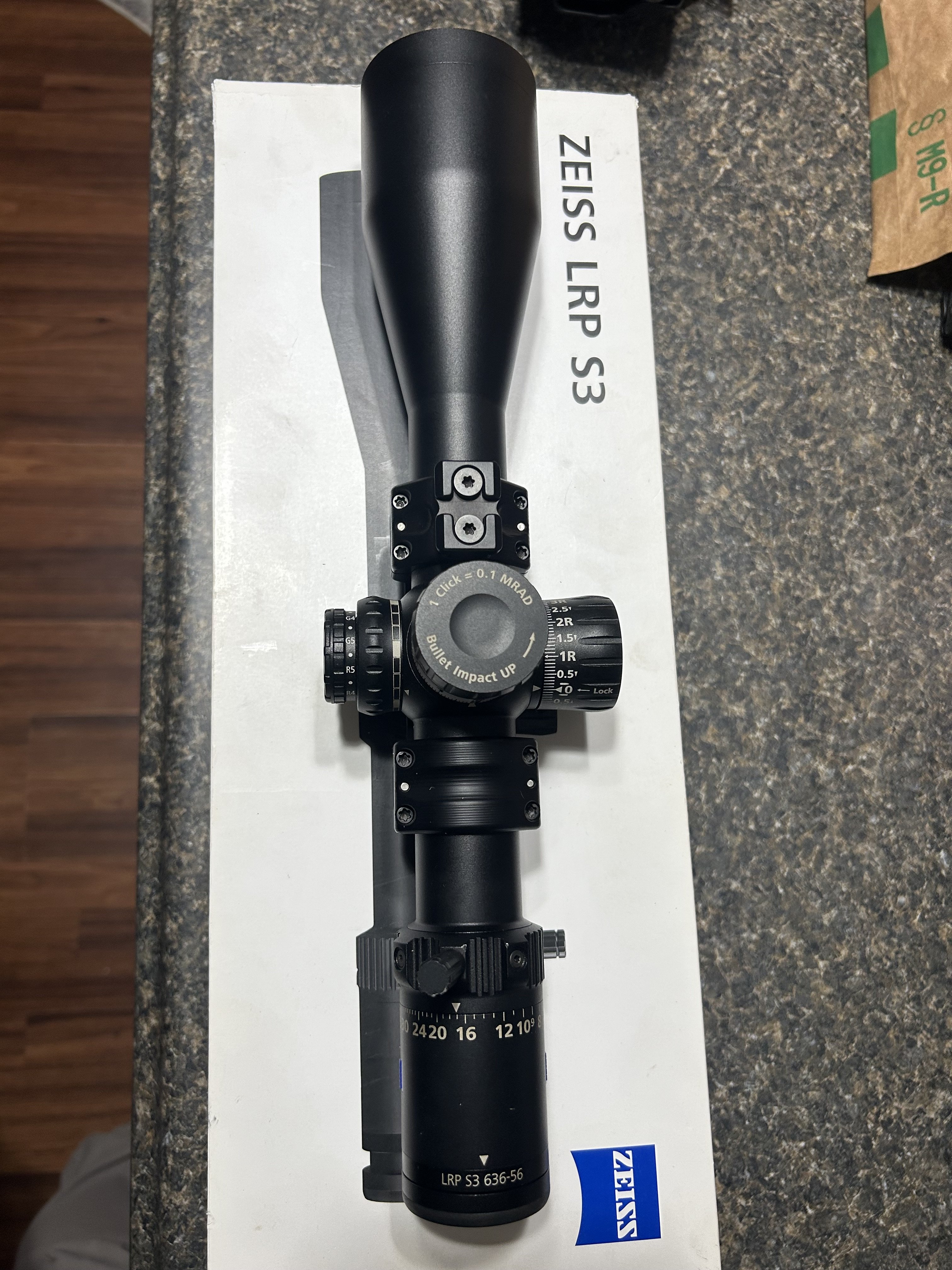 Zeiss LRP S3 6-36x56. ZF-MRi Mil reticle. One small scratch on front lenses. It doesn’t affect anything or even noticeable.