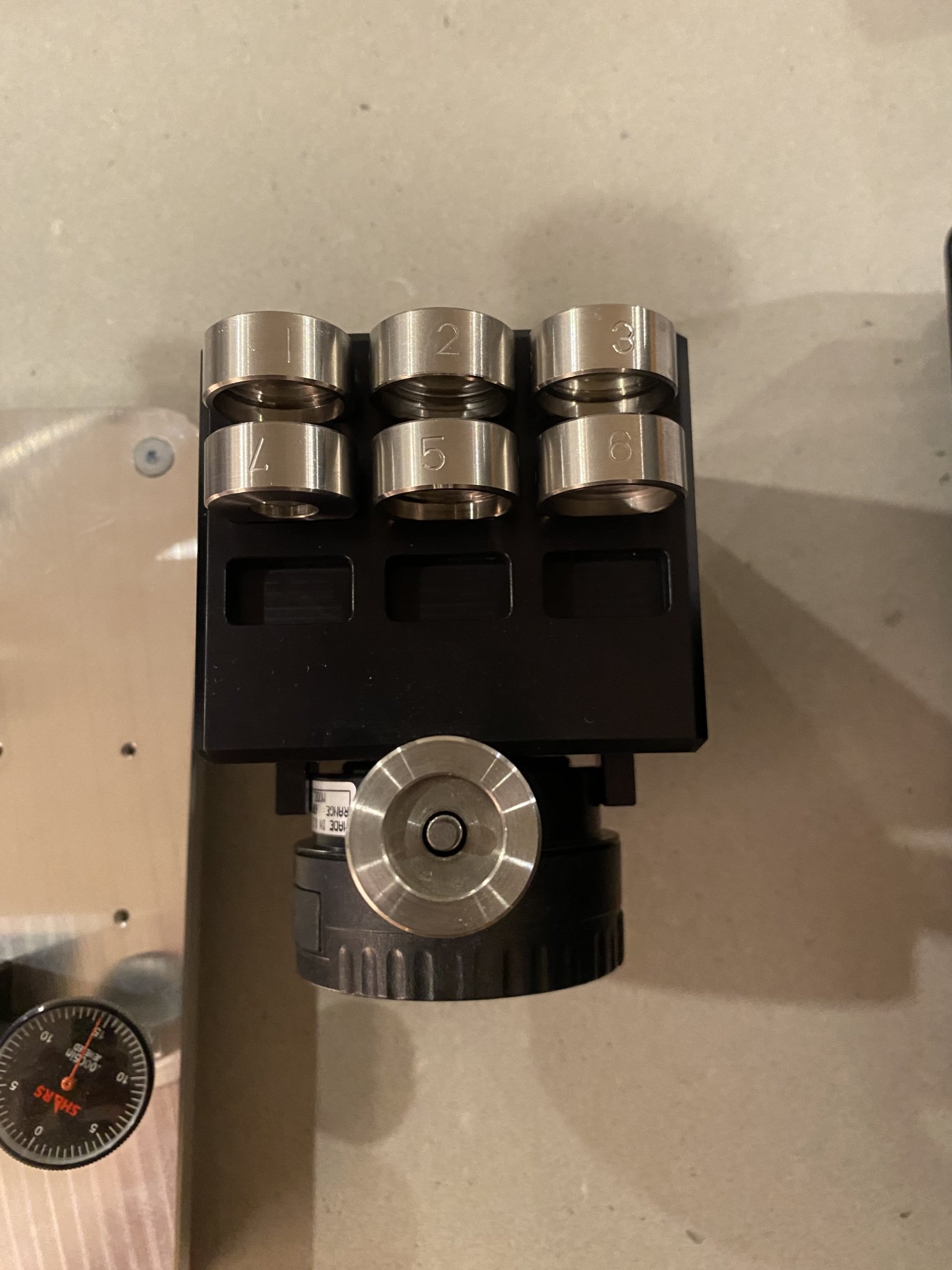 SOLD shipped with micrometer, solid aluminum stand, all 7 collars