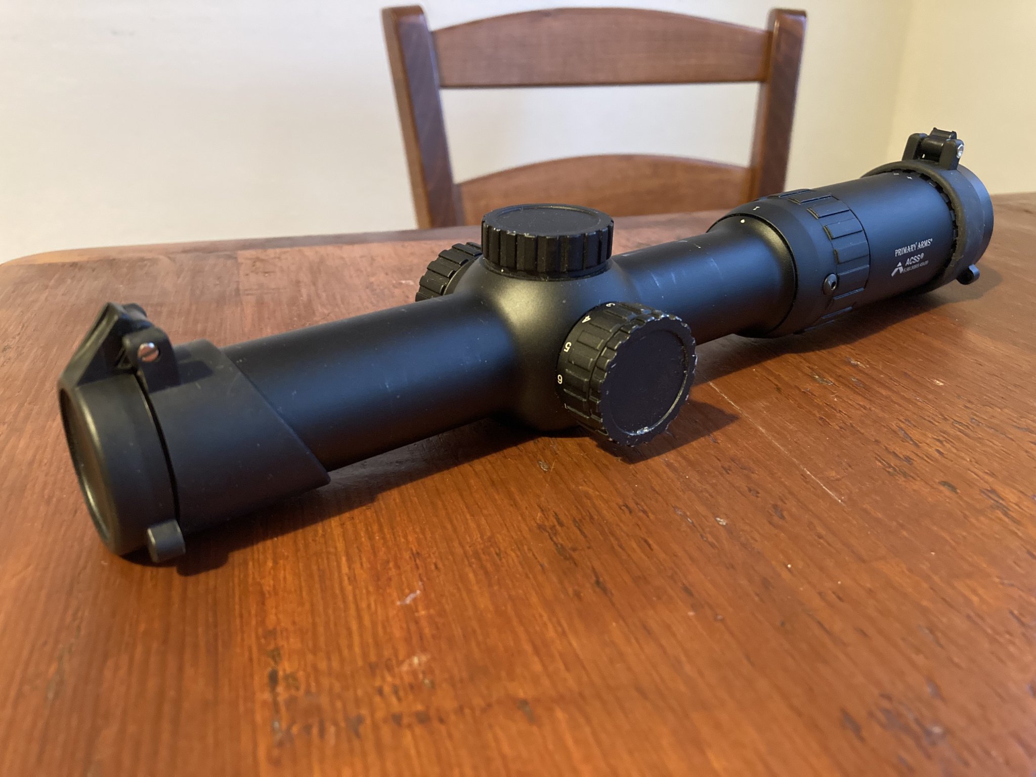 Good condition, has some rings marks and wear on the side turret. Comes with battery. Gen 2 ACSS.