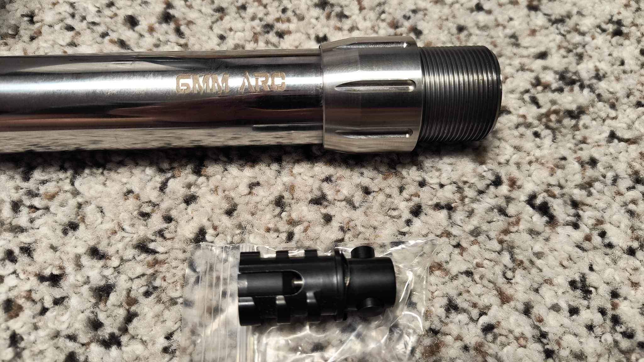 Including a PPC bold head, stainless barrel nut and stainless Olympic Arms barrel. 7T, 25", polished finish chambered in 6ARC. Barrel has one box of ammo and shot average groups, not great groups but good enough for hunting.