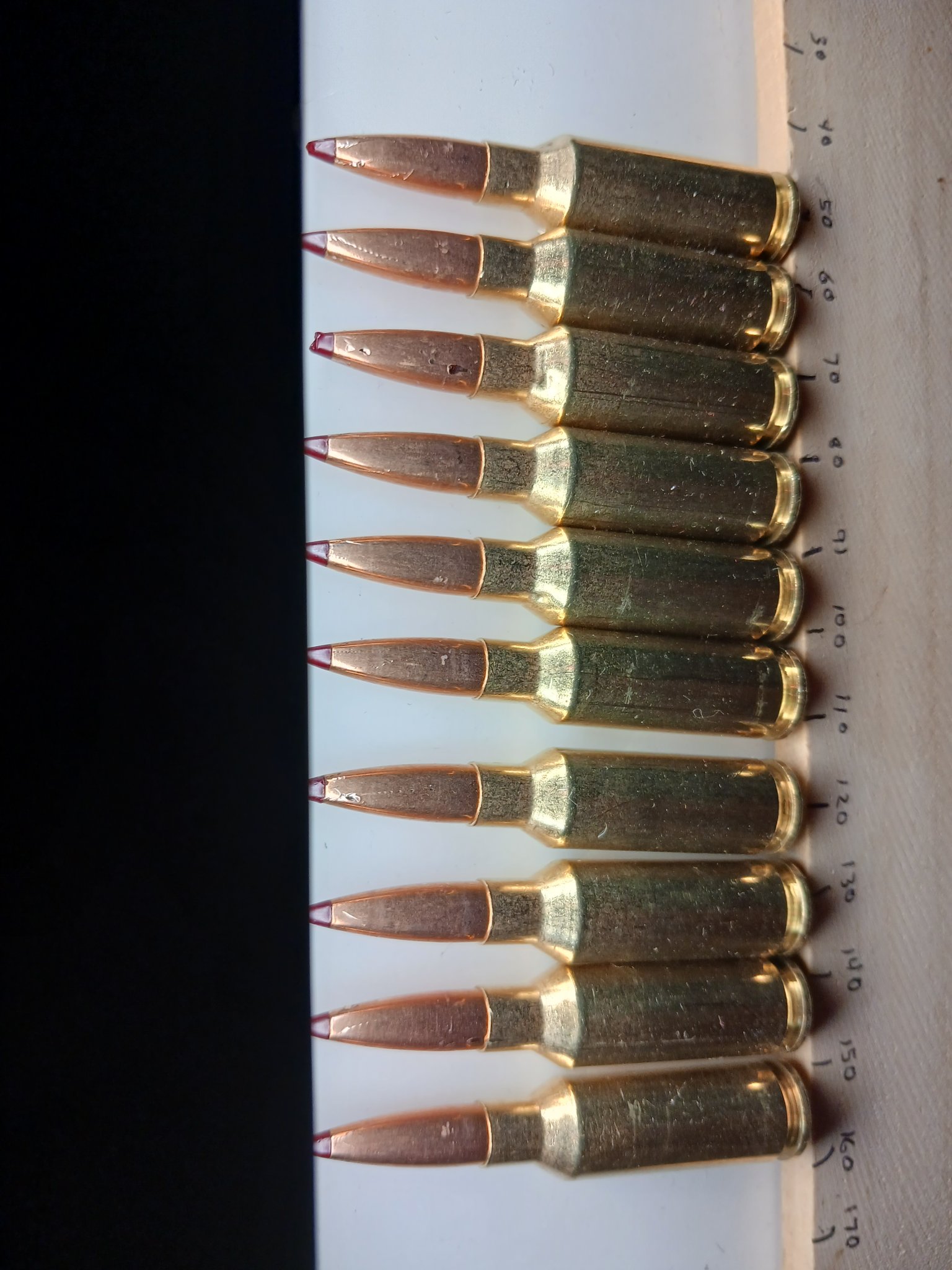 I ran one magazine of 10 through the CMMG, just ejecting one after the other. The pictures included here show, as well as I could manage, all the rounds side by side and rotated slightly from one picture to the next. There are certainly some interesting blemishes. Some certainly look like what I would call gouges. I was less successful showing the chamber and feed ramp, but I uploaded what I got and will try again tomorrow for better positioning.