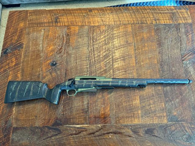 .300 RUM 20" Proof Barrel, Zermatt Origin action, Manners Pro Hunter carbon stock, Triggertech Special Two stage Trigger, bottom metal is unknown munitions. Shooting 180gr hammer bullets out a 20" barrel at 3,156fps! Chamber by straightjacket armory, cerakote by snake River cerakote, has less than 100 rounds 4000 shipped no trades