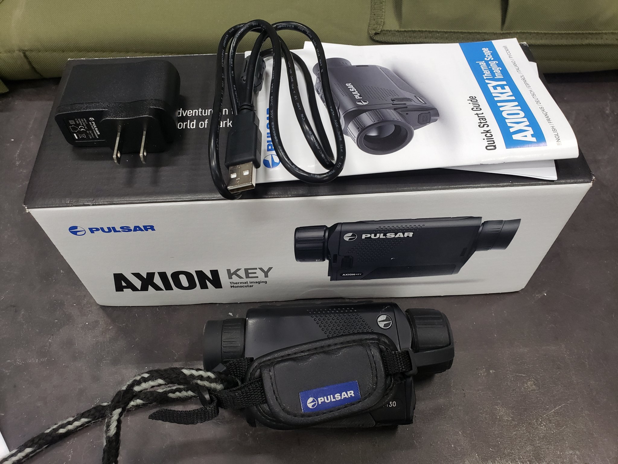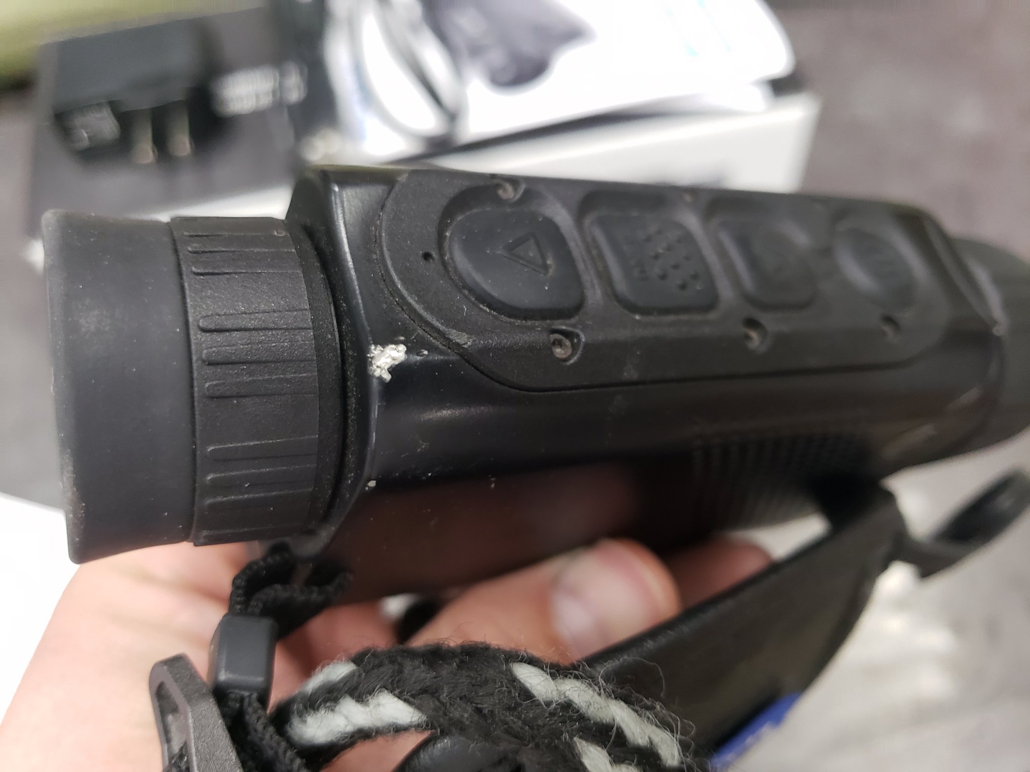 Selling my pulsar axion xm30 key. Purchased new in 11/19, I am the original owner. 2.5-10x 320 unit 12 micron. This handheld has worked absolutely flawlessly for me. Never had a single hiccup with it. Including all original stuff (box, manual, case, cords, etc) it has a small nick in the body shown in pics, and has a flaw in the border of the screen (pictured) doesn't affect the picture or function at all. Great handheld for the money