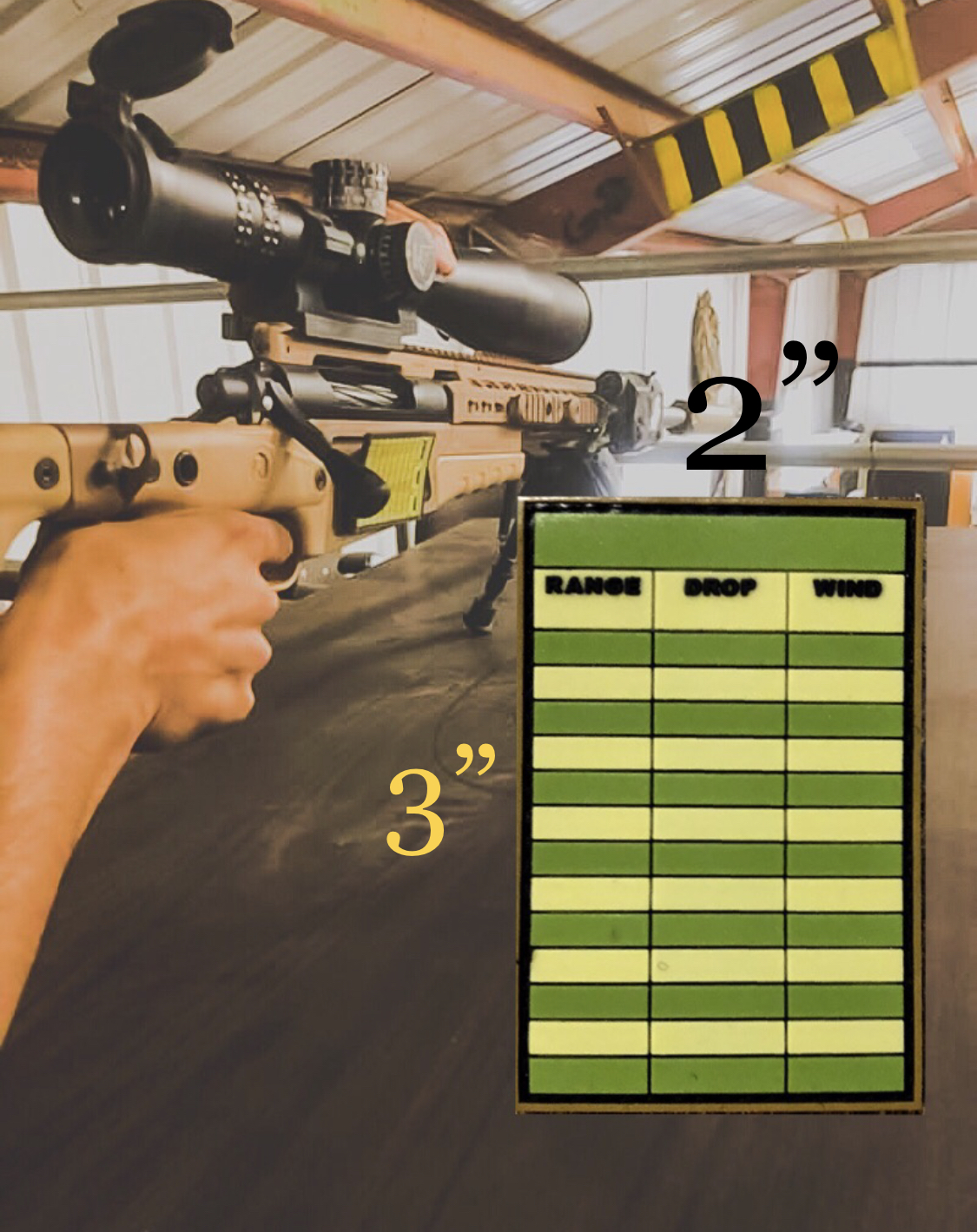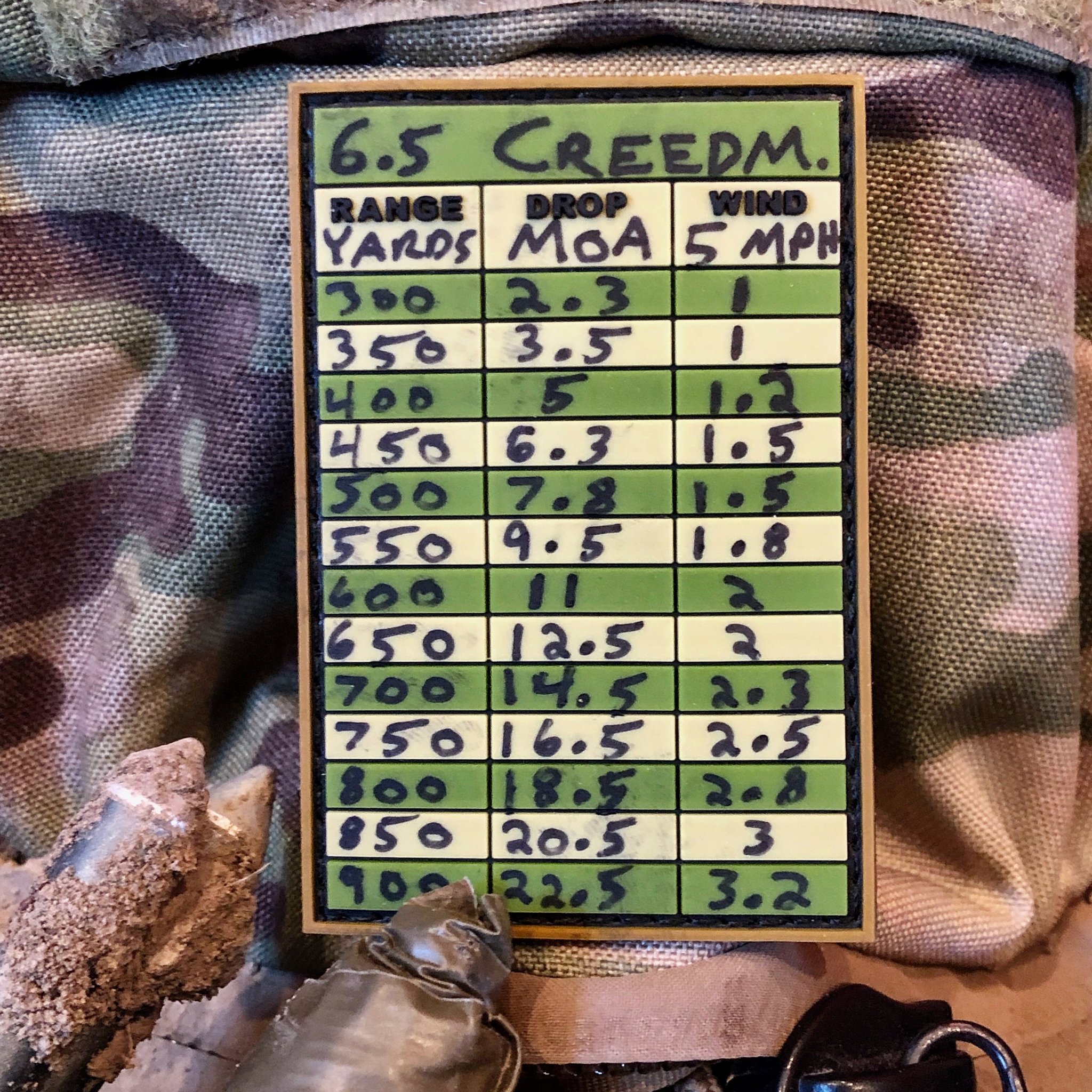 PVC Range Patches. This allows you to write drop data and stick it where you want. Comes with an adhesive Velcro strip. Size is 2”x3”. These are weatherproof unlike paper data cards. These are also flexible and can be easily ran on things like tripod legs.