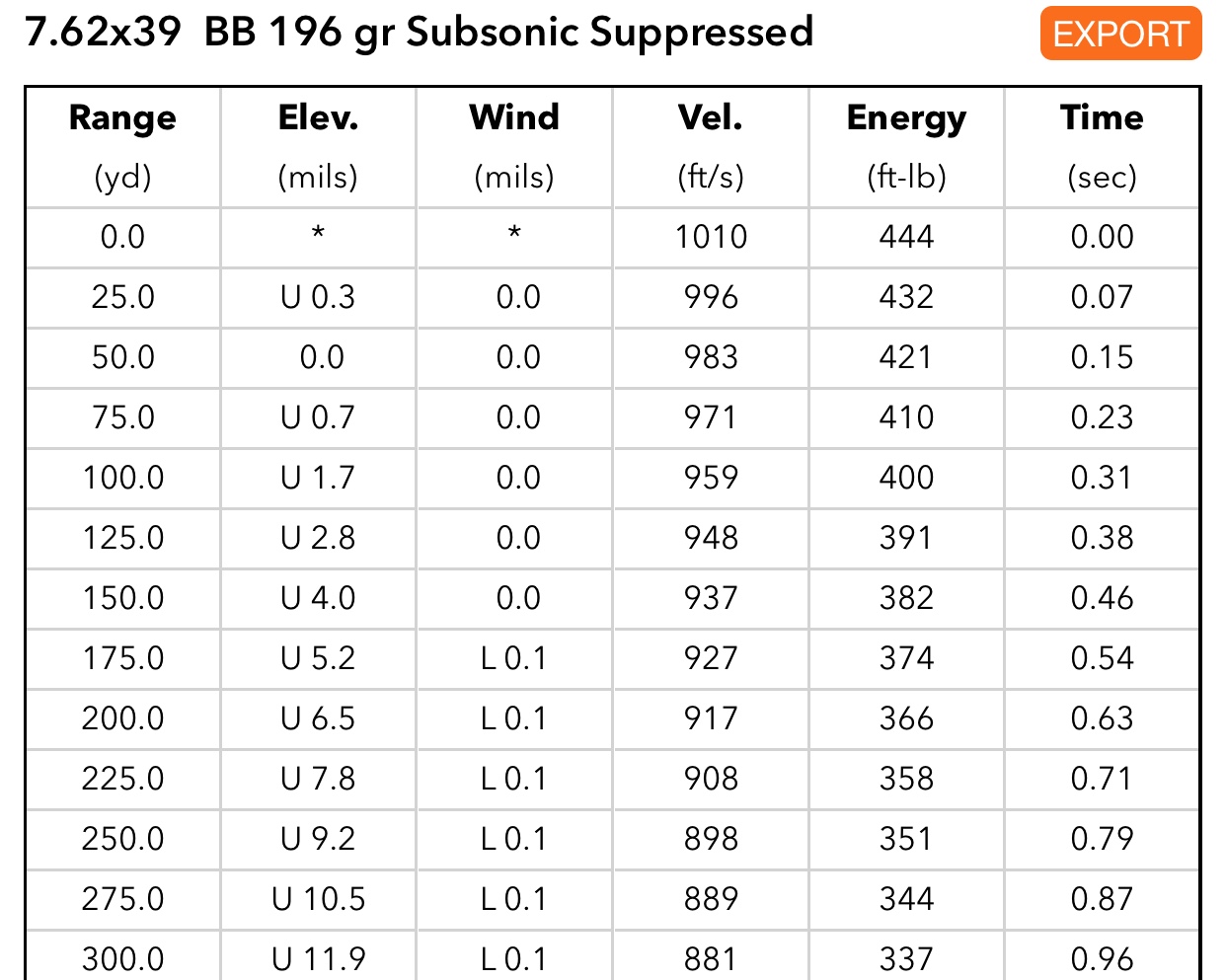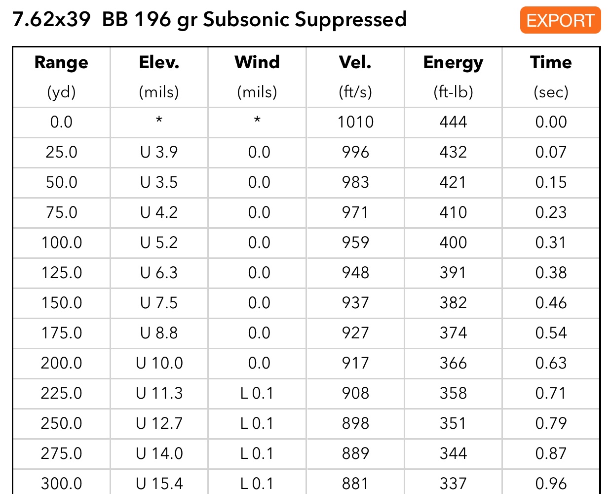 I did attach the drop chart with my zero for supersonic, and drop chart as if I zeroed the rifle for these subs (in MIL since most of you use MIL)