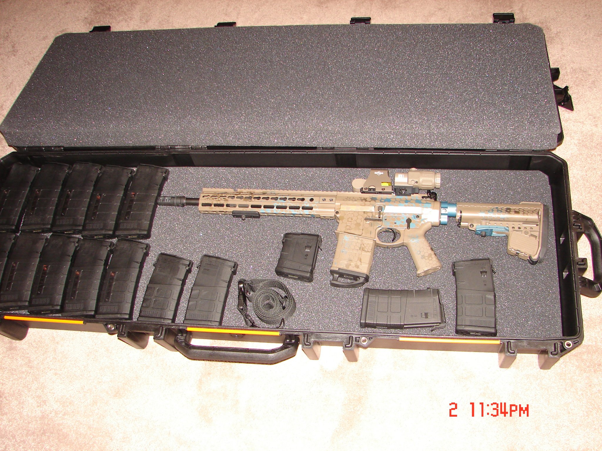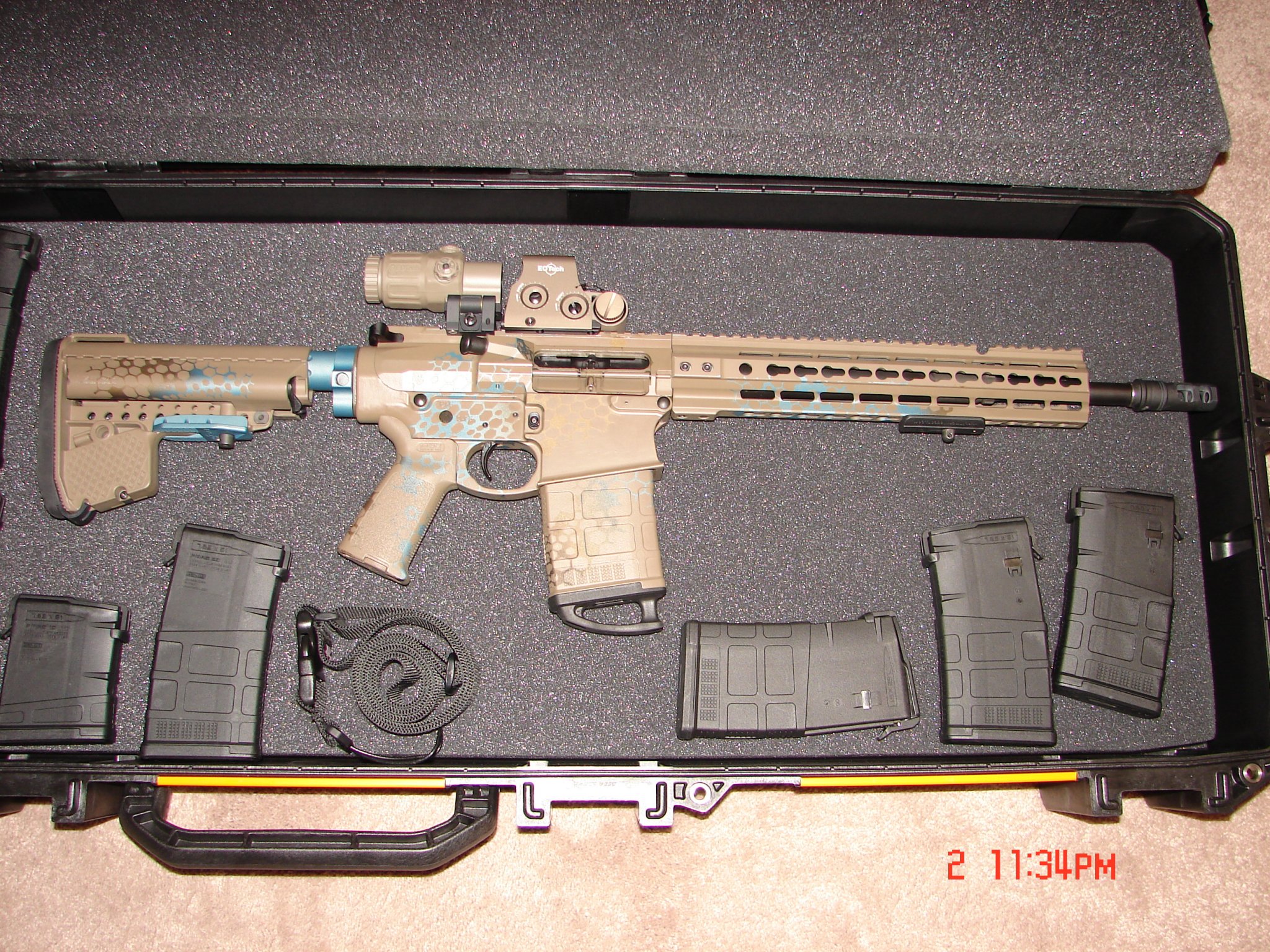 Sling and ships in a new Pelican Vault. Cerakote was done by Medal EFX out of Midland Tx. Comes with a cerakote color matching 20 rd. p-mag.