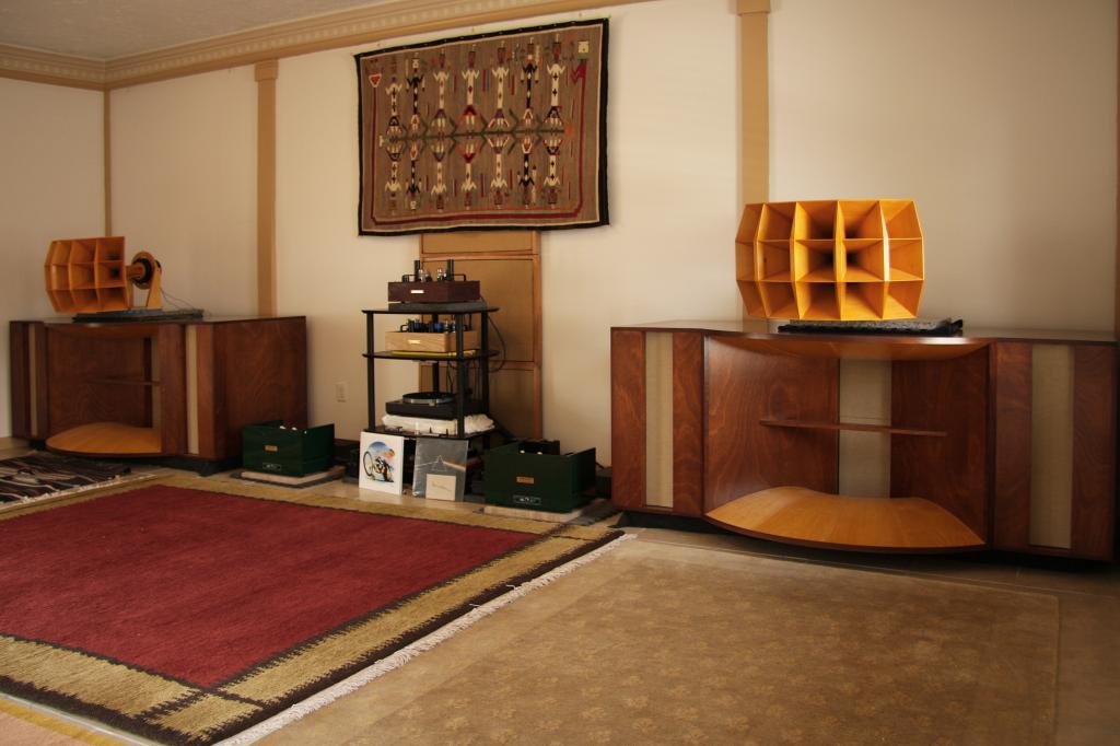 The amps are Altec 1570's modded and improved by a master. Rated at 165 watts p/ch but we measured them and they didnt clip til 193. The tube preamp and phono stage are custom built by the guy who modded the amps. All point to point wiring. The horns are custom made replicas of the old RCA 9462 bass cabinets aka 'Ubangis'. The horns are reproduction Altec 1505's built by a Cuban guy from Tilia wood and all natural glues and shellacs. The turntable is a Linn Sondek but now I use a Technics SP 10 Mk II. Im PMing you a link.