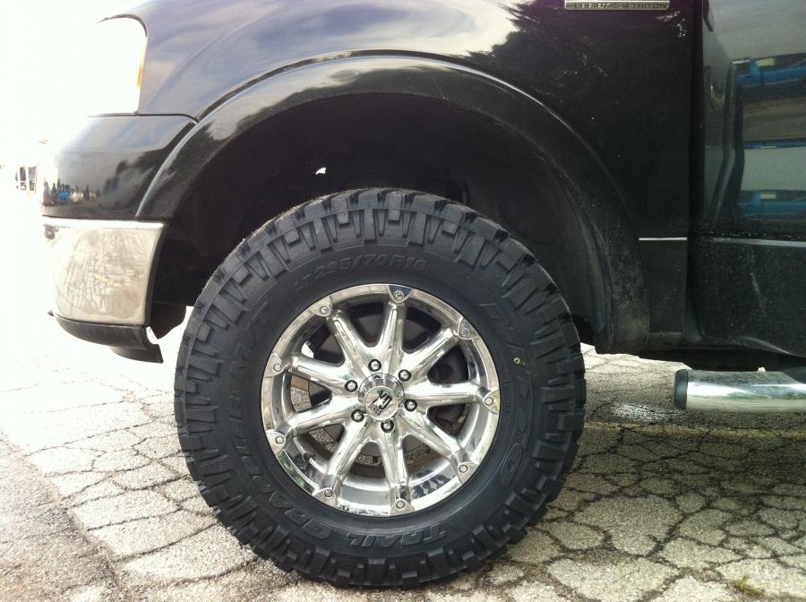I own an '06 F-150 Lariat Supercab 4x4 and the only mods are a 3" leveling kit, 18" KMC XD Badlands, and last night I mounted new Nitto Trail Grappler 295/70R18 tires. I love the way it looks/rides and I'm surprised the tires don't have more road noise than they do but, I'm having an issue of sorts.