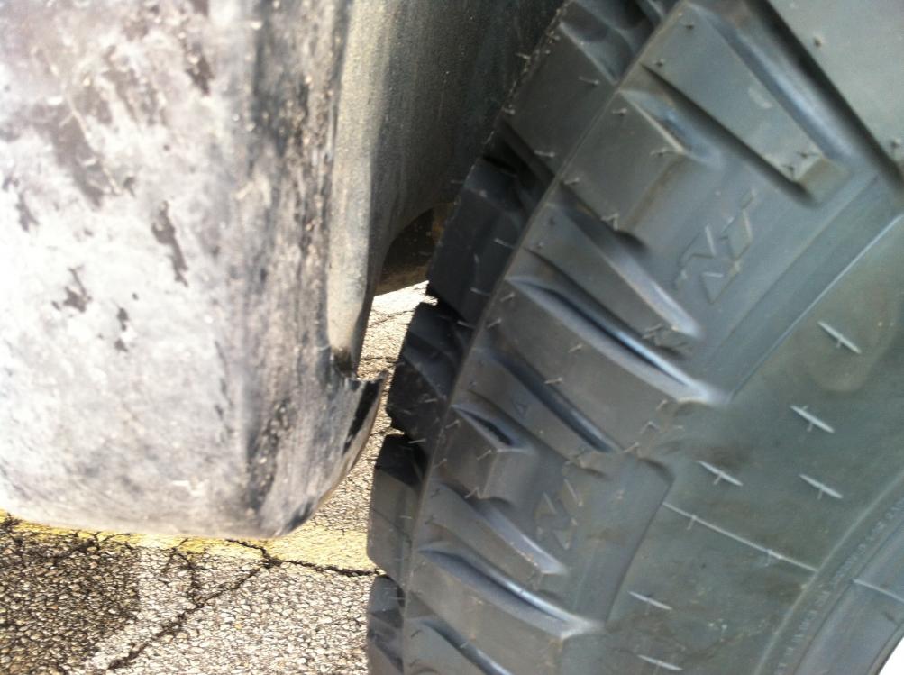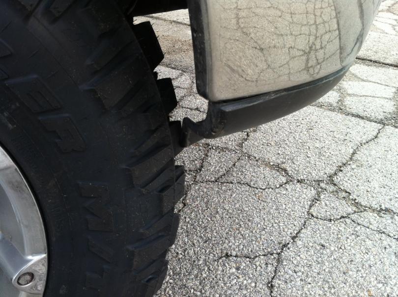 Now, I'm wondering if the larger tires have revealed an underlying problem and perhaps I damaged my front end when I hit the curb. The driver tire has enough clearance but the passenger tire rubs on the front fascia and the rear of the wheel well/fender trim.