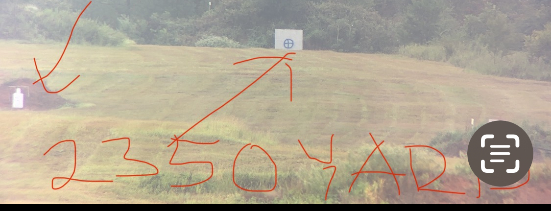 We were easily able to see the 2350 from the prone to the far right of the raised shooting line. Somebody said they hit the 2500 yard target and I did not see one of those, even when we helped Aaron paint on Friday night and I put up the red HIT indicators.