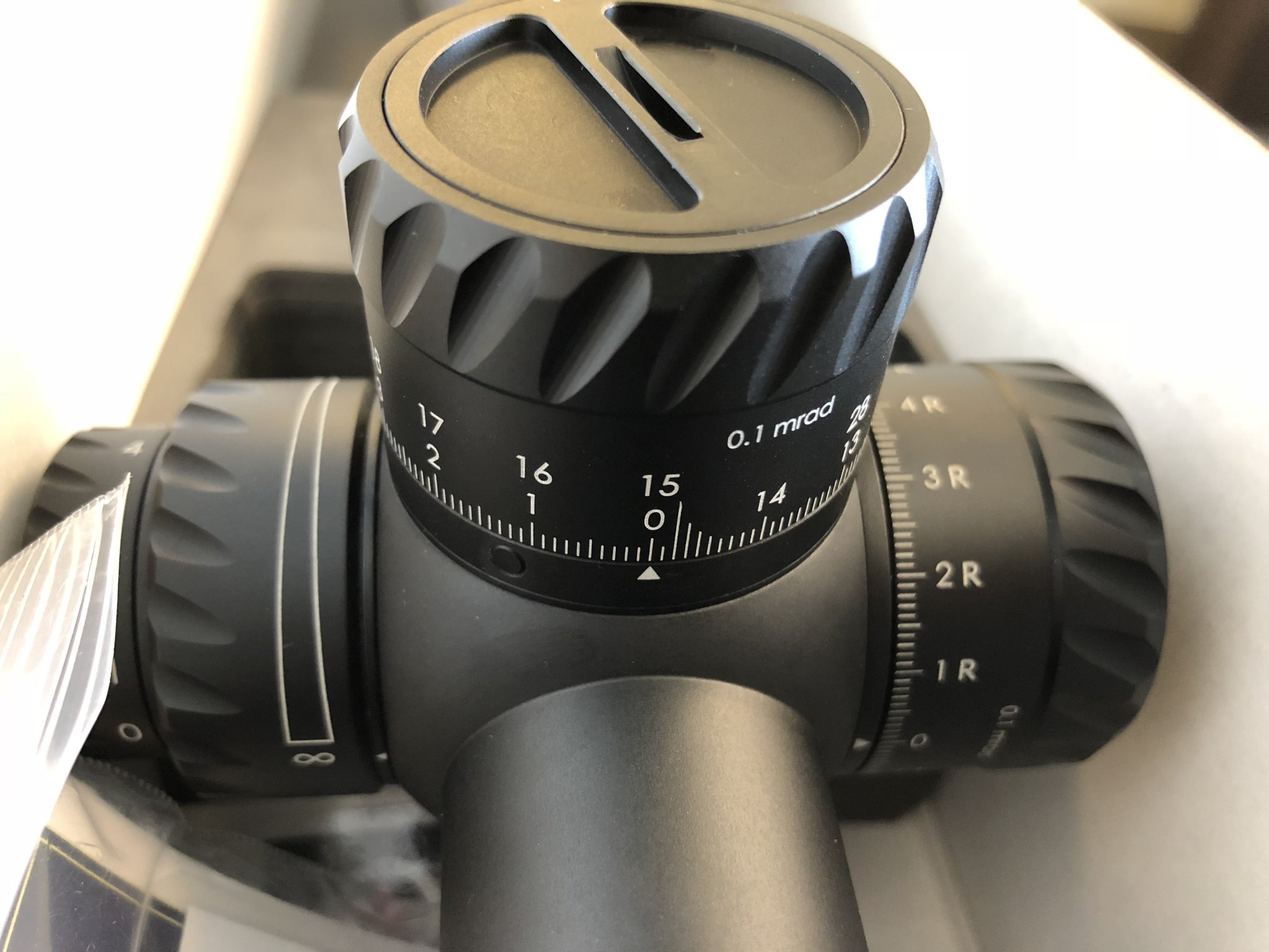 4) Turret - Let's get down to why I'm doing this mini-review (or not so mini). I'll start by saying my elevation turret was slightly mis-aligned and it's obvious when you look at my video. The marking is slightly off from the arrow indicator... and yes I've tried realigning it using the instructions; but, if you don't own a tangent theta you won't know that doing this (like on other scopes ) is not that straightforward... and yes TT and armament (their distributor) already is aware. What separates the TT turrets from the other high end players, is the feel and appearance. It's large... like the size of the vortex gen2 and or minox. It feels good in the hand; but, the knurling is machined to feel comfortable, with just enough grip. The actual movement of the elevation turret I find to be just "ok". I find the windage turret to be "something special" in the words of a fellow optics reviewer. It's incredibly crisp, incredibly crisp...imagine the best feeling turret you've ever felt (I thought nightforce was it for my hands).... TT blows what you felt out of the water. Now I exaggerate a bit, the reality is we are splitting hairs, and it's all personal preference. The elevation turret of the TT feels similar to my schmidt's and kahles when it comes to actual movement, precise, basically no play, that dull "thunk" that says it moved confidently to the next setting.