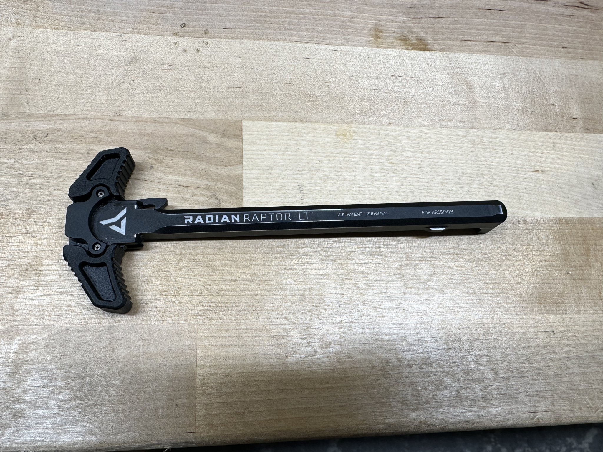 Black radian raptor LT charging handle. Shows signs of use but doesn’t affect performance.