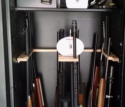 Pics or it didn't happen.The storage racks that come in the safes are way too poorly designed to ever hit the stated capacity (unless they're just filling it with Beretta bobcats). I took a day and played around/took measurements and made myself a new one. Particle board, going slow with a router, cover it with carpet when you're done. I easily fit 25-40% more rifles now because the spacing is designed around my guns. The one size fits all racks (mine was two large U shaped areas) suck.