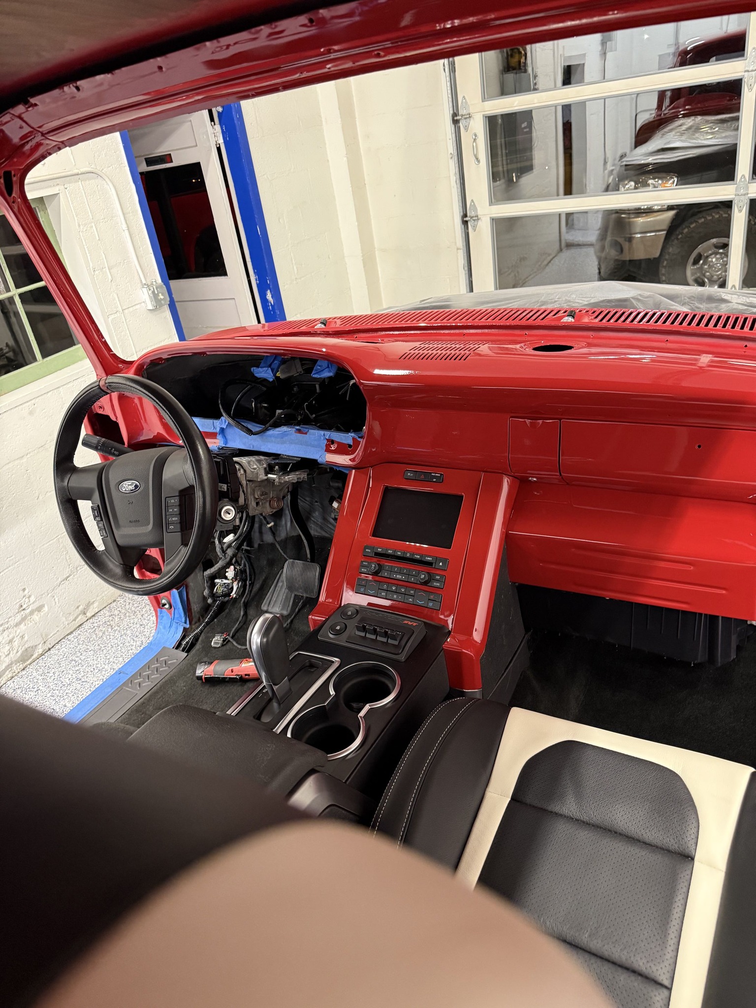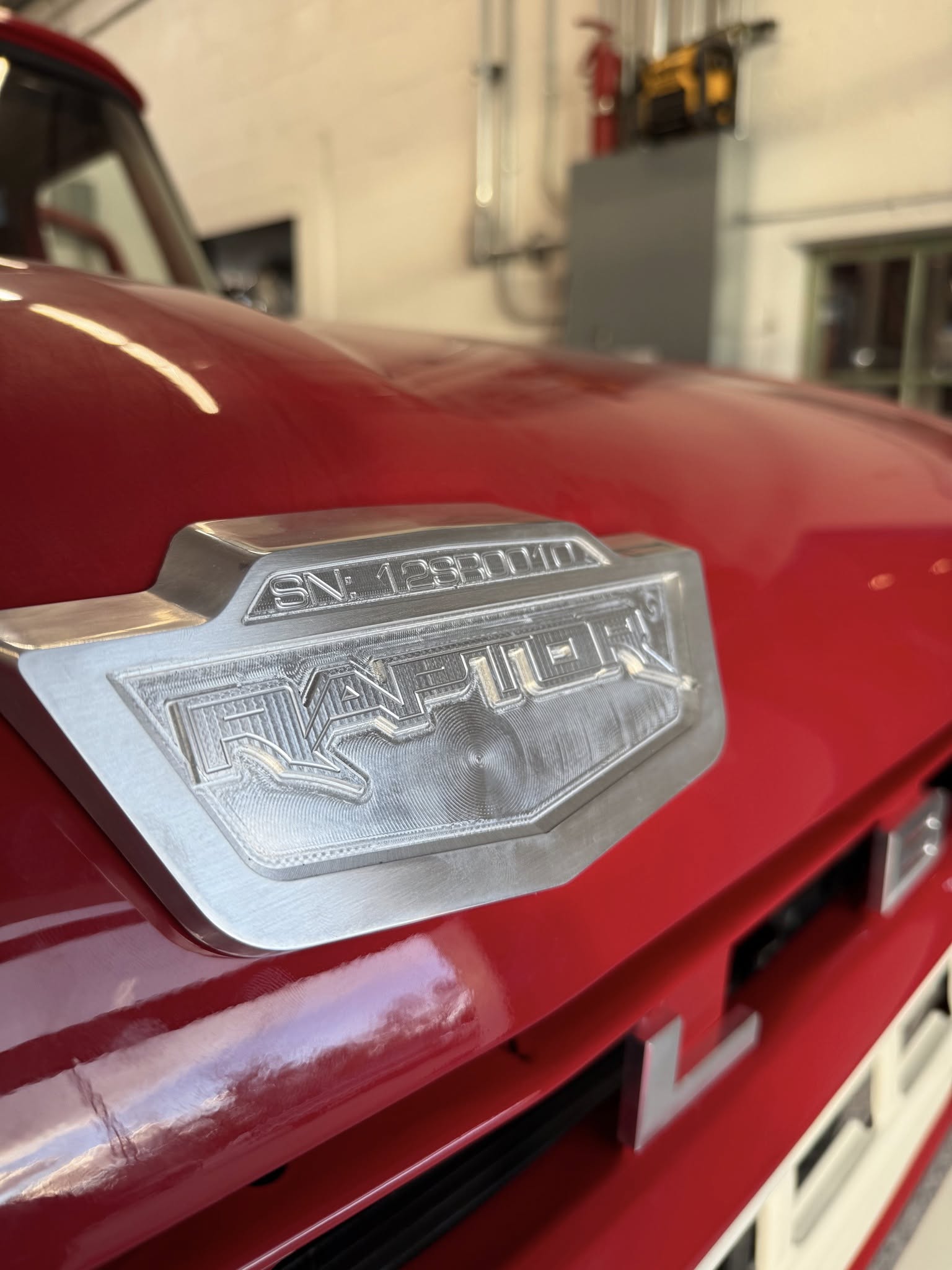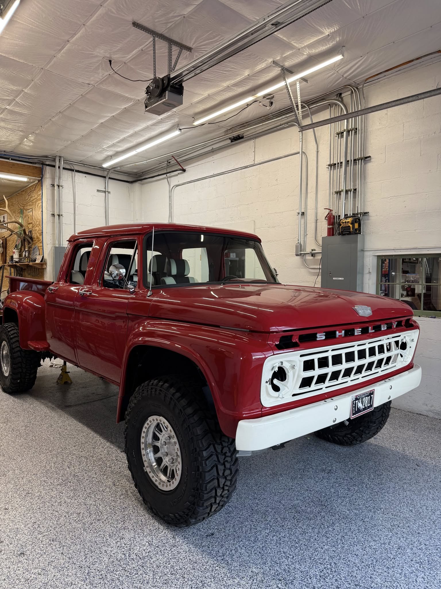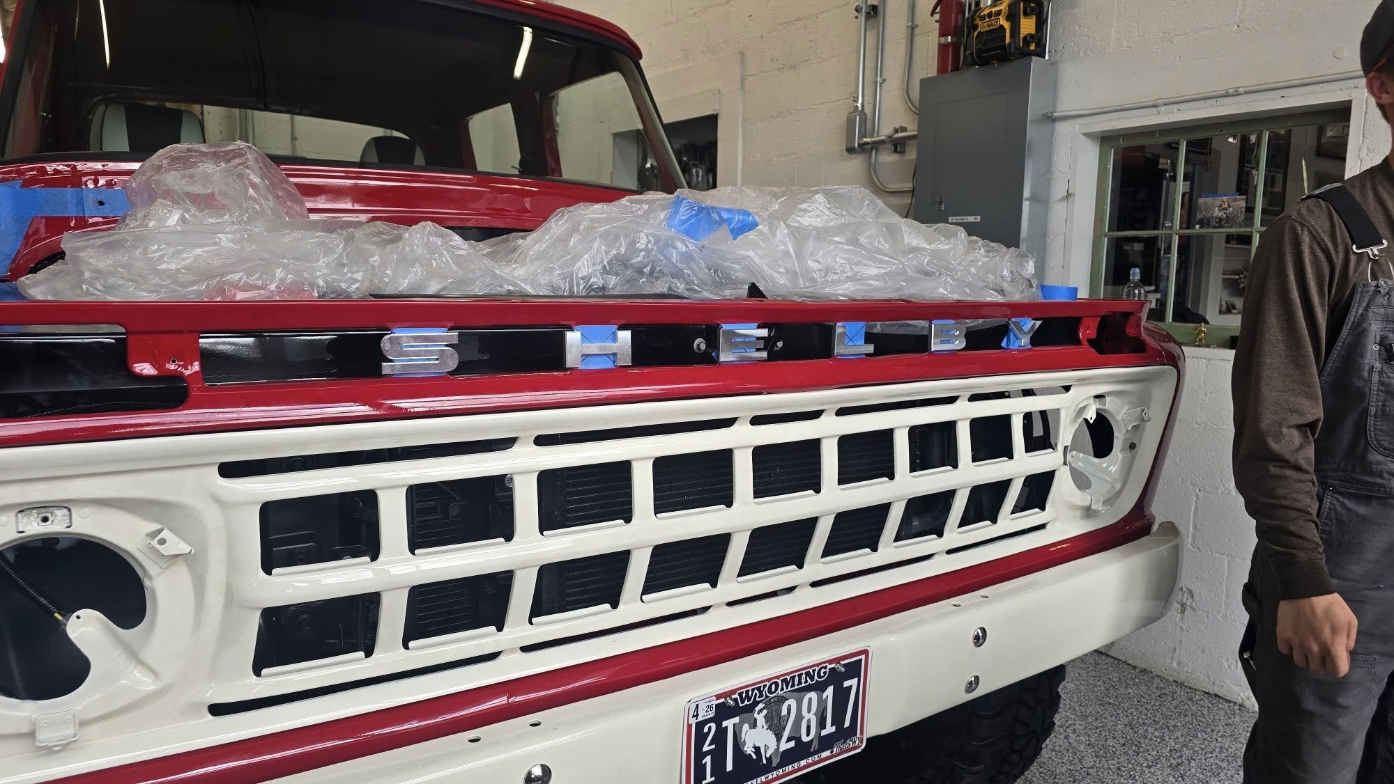 Some folks in WY showed up a few weeks ago with a fun project. They take a V-8 Raptor and send it to Shelby America in Vegas to spiff it up. When it comes back, they remove the cab/bed and replace it with a 1965 crew cab body.
