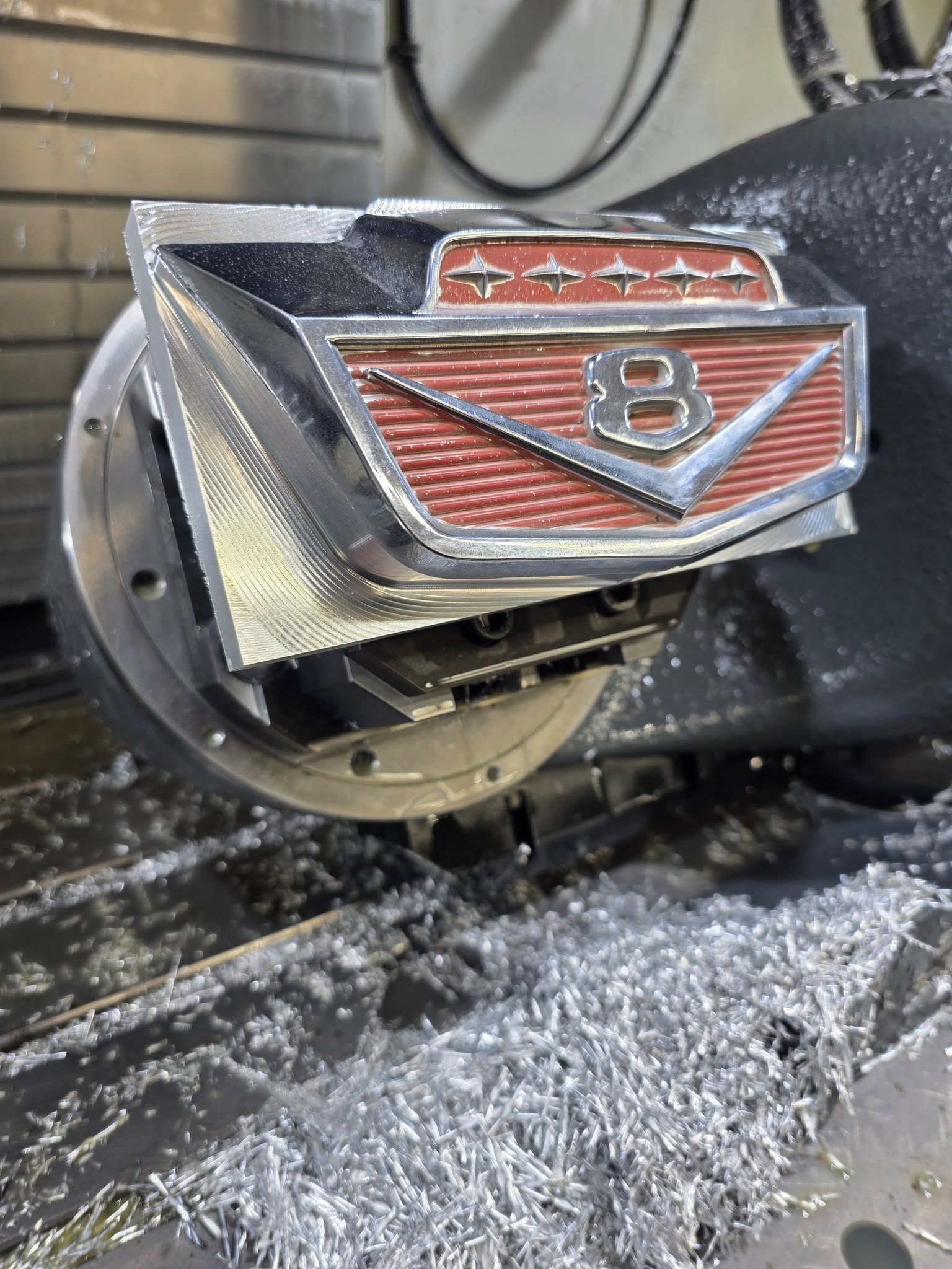 I was asked to make some trinkets for it. This evolved a bit from the original conversation. Thankfully, the owner gave me a long leash on this one. I always have to be mindful of scale when engraving with a CNC mill. One can model the Sisteen Chapel onto a postage stamp with a computer, but trying to make that actually work is another story. It quickly became apparent that the artwork had to be changed for this to work. My other alternative was to throw it on the laser, but that had its own set of challenges, and the owner wanted this to have a machined feel/look to it.