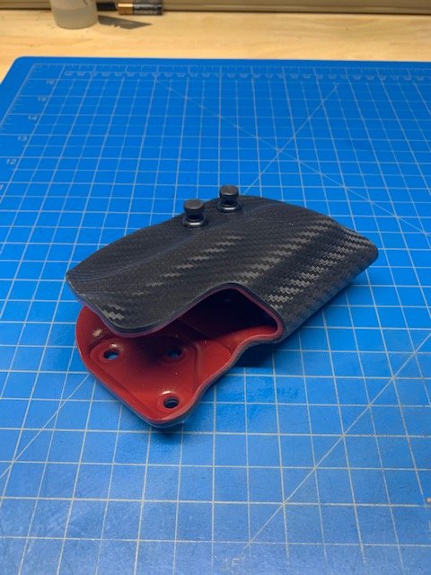 Brand new Red Hill Tactical Holster for Glock 19. Carbon Fiber Outside, Blood Red kydex inside. Upgraded DLC tension screws. Compatible with Tek-Lok or any of Blade-Tech's attachment systems.