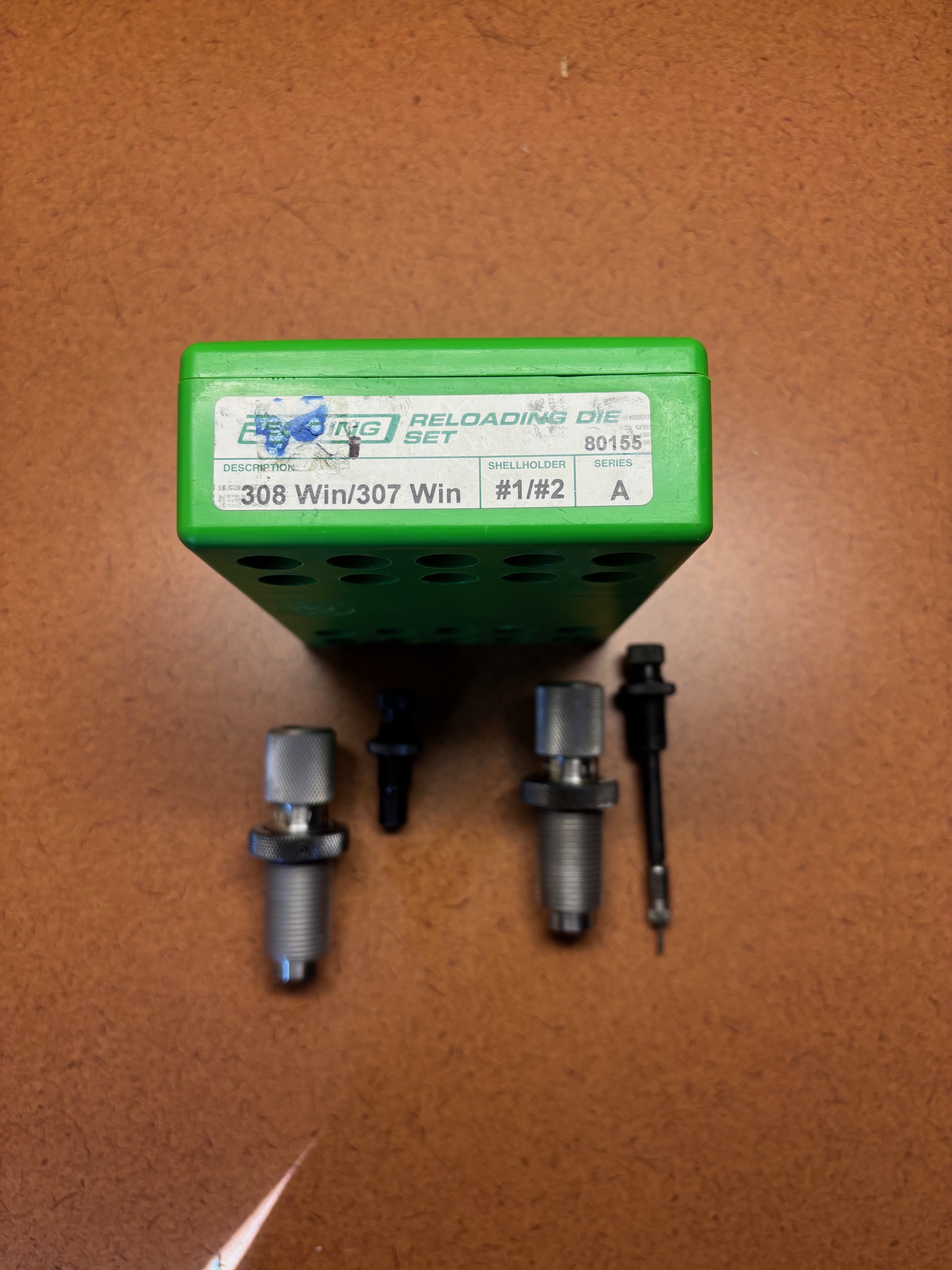 Redding Reloading 308 Win Full Length Sizing Die Set 80155 Great condition. No rust or corrosion. With original box, extra de-capping pin, allen wrench and paperwork.