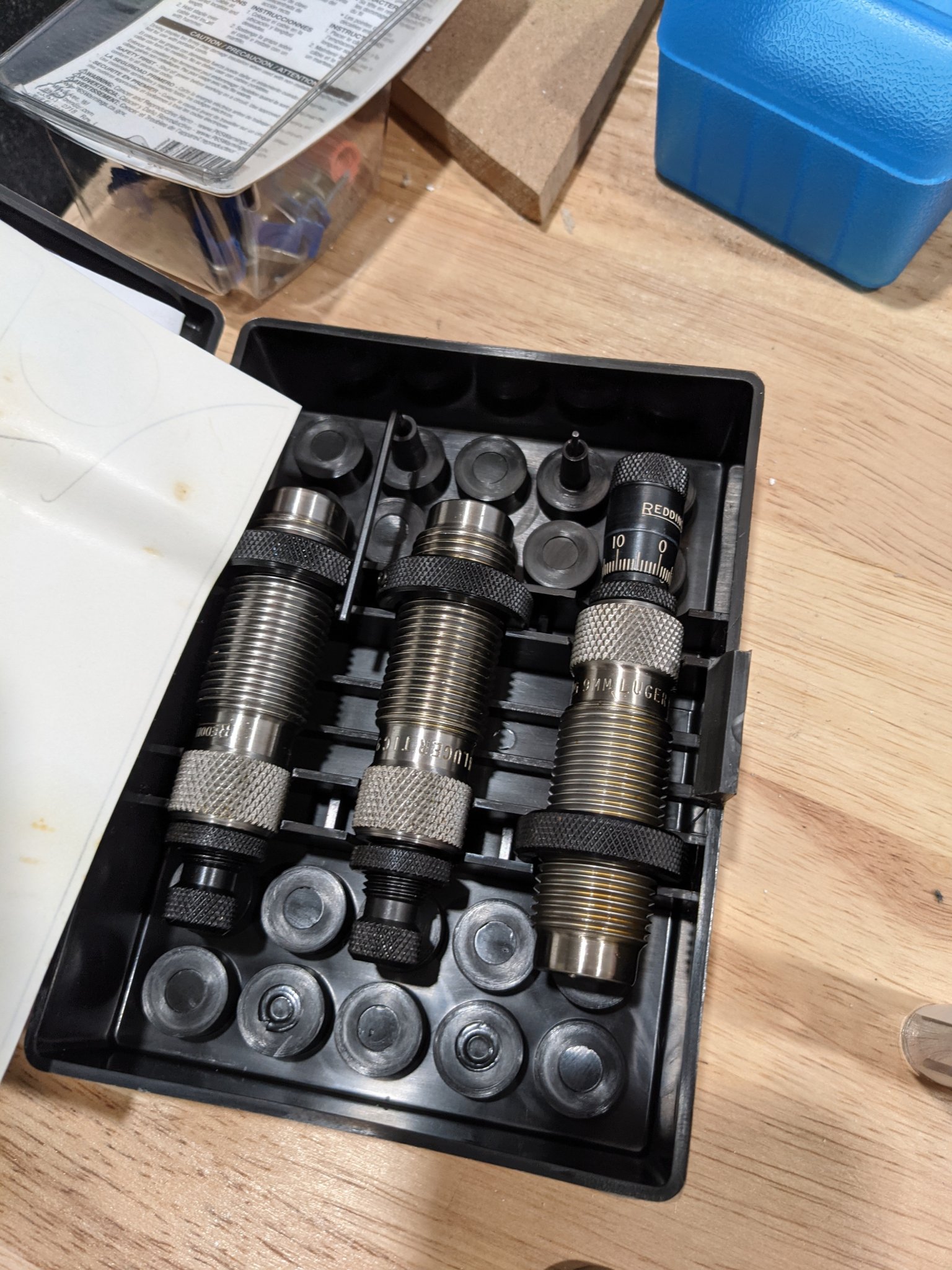 I've got a set of Redding Premium 9mm dies (#66172), these have the micrometer seating die. Looking for $100 shipped.