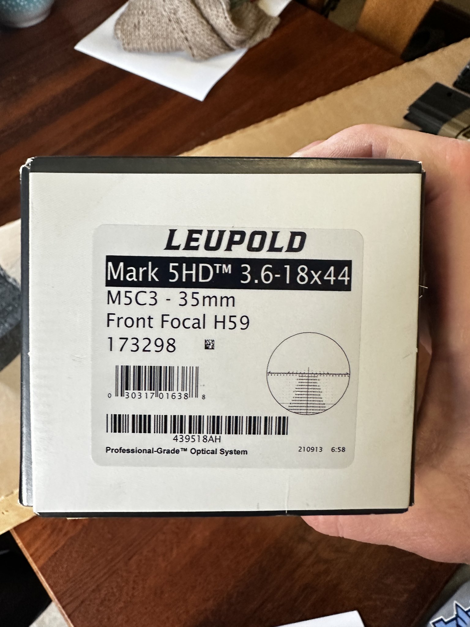 Selling my MK5HD 3.6-18 with H59 reticle. It is flawless and tracks true. Comes already mounted on a Leupold Mark AR cantilever mount. I bought these directly from Leupold. Sun shade is included and unused. $1600 $1700 obo
