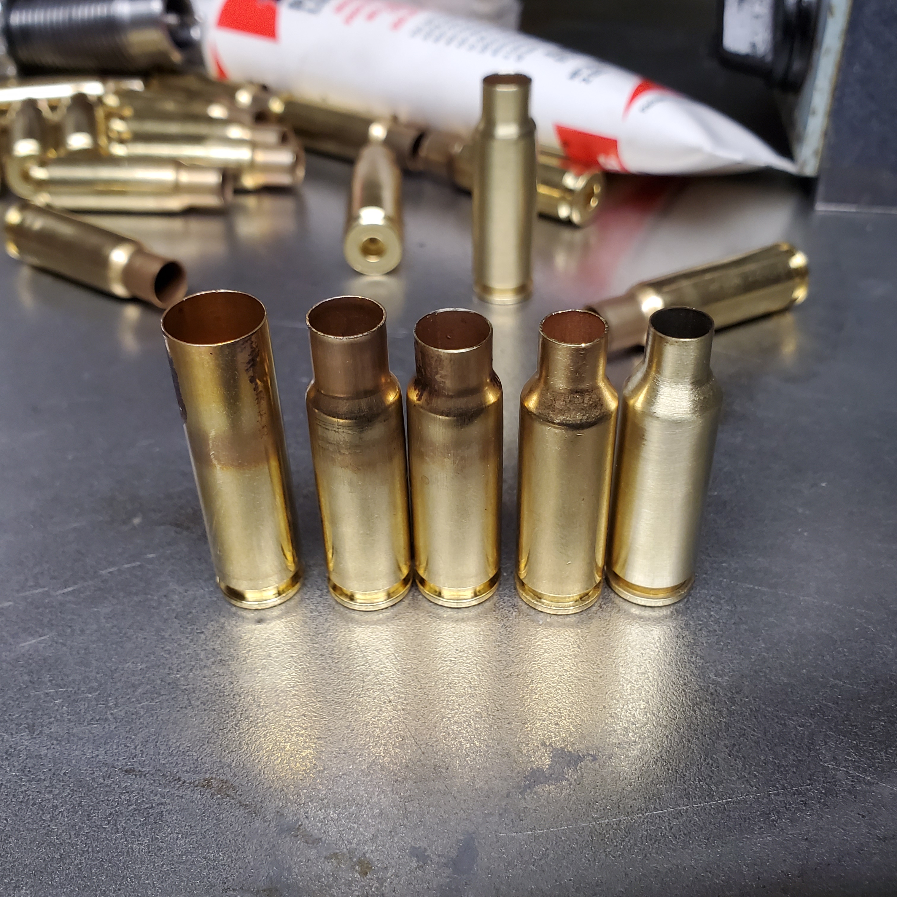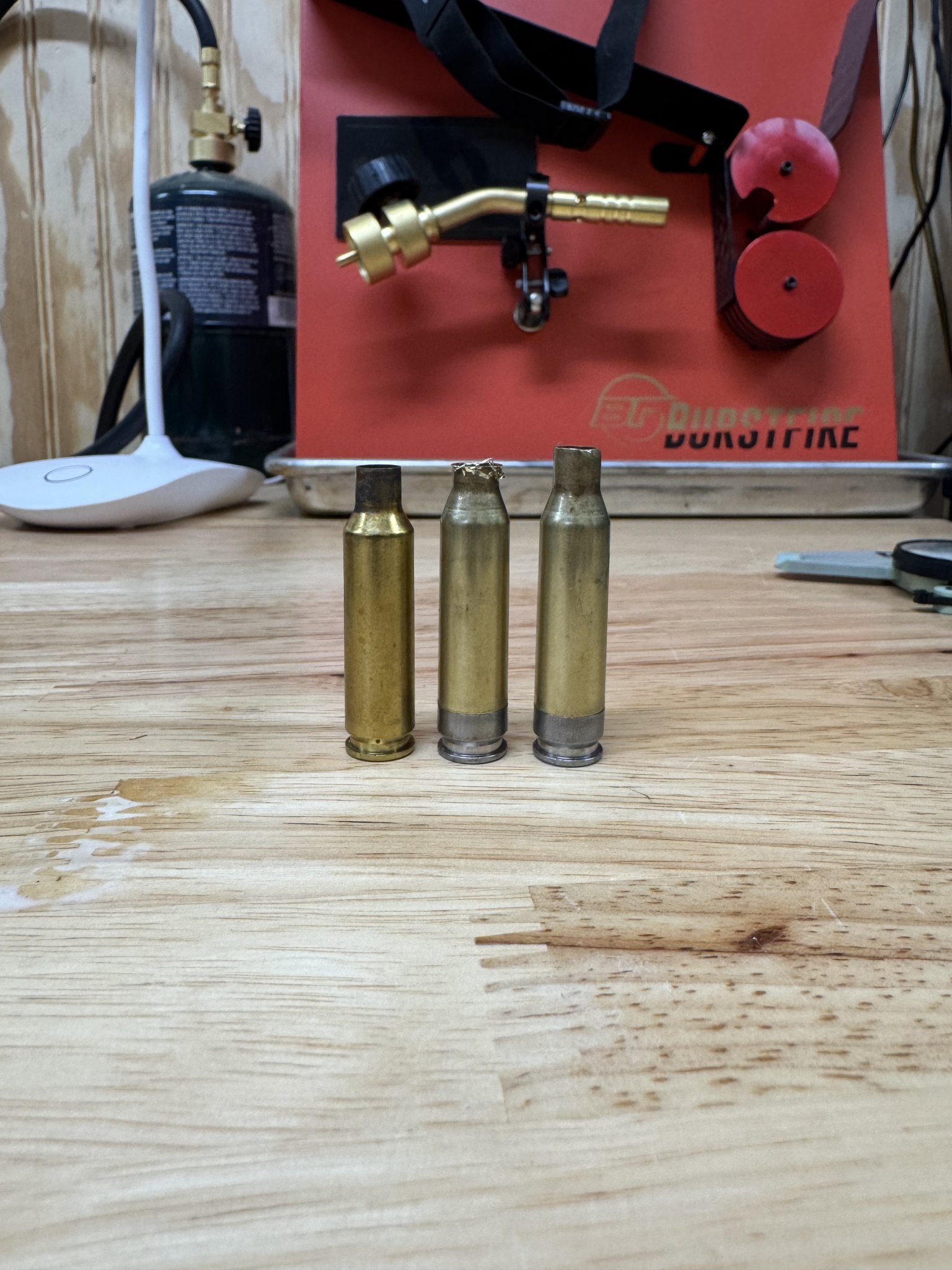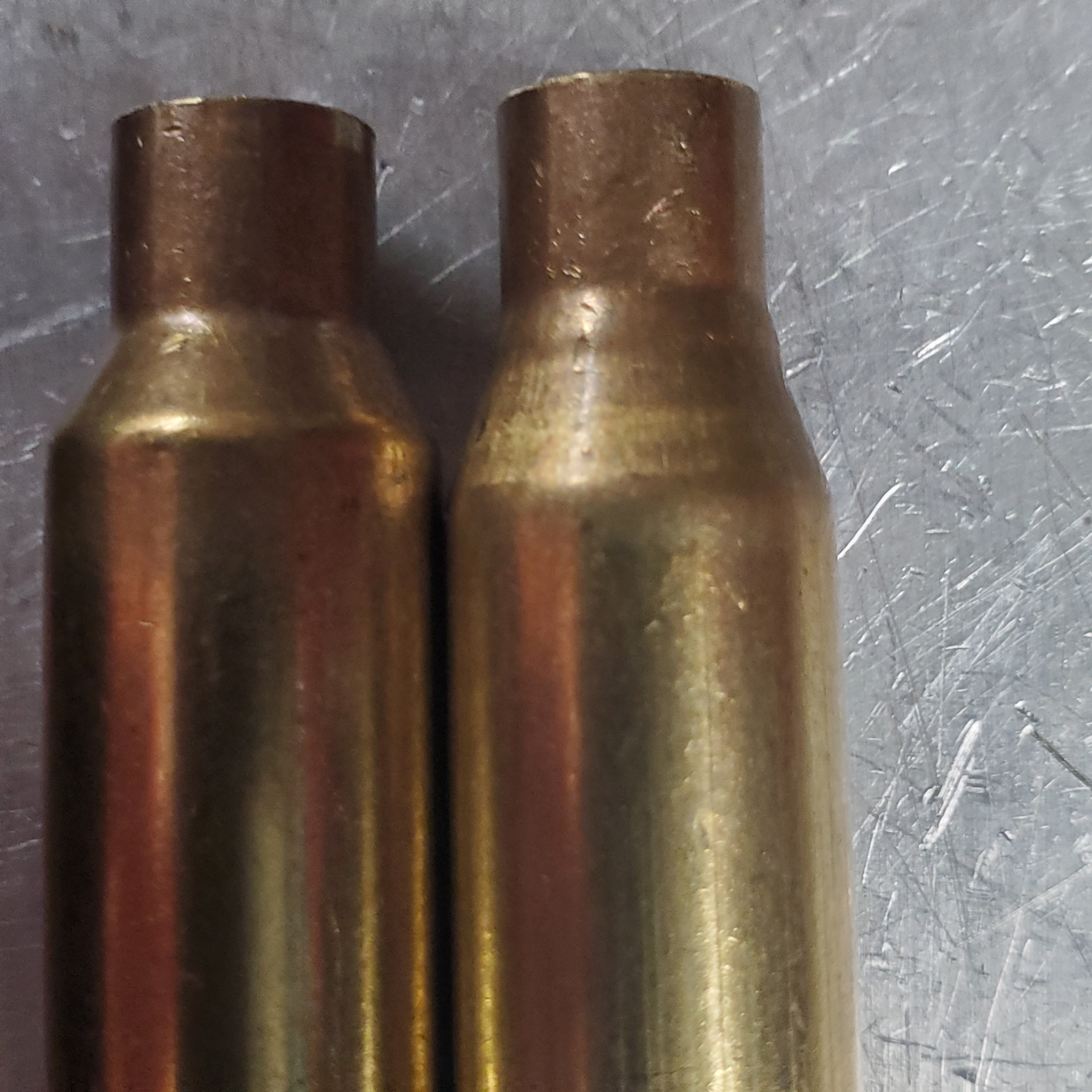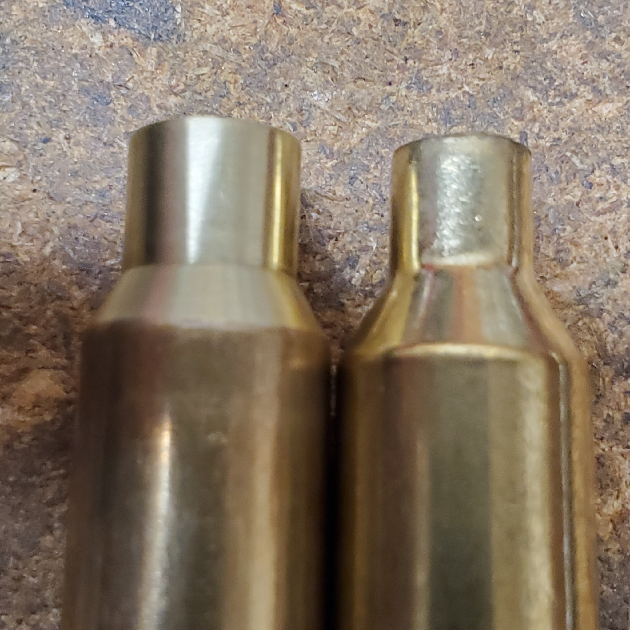 The last portion of the new 308 neck and the new radius in the head shoulder junction will have more material than normal to form, and push back partially back out with the expander ball, leaving a small ring in the neck, if used...no expander ball the neck will stay thicker in that area creating a pinch point...in both instances.