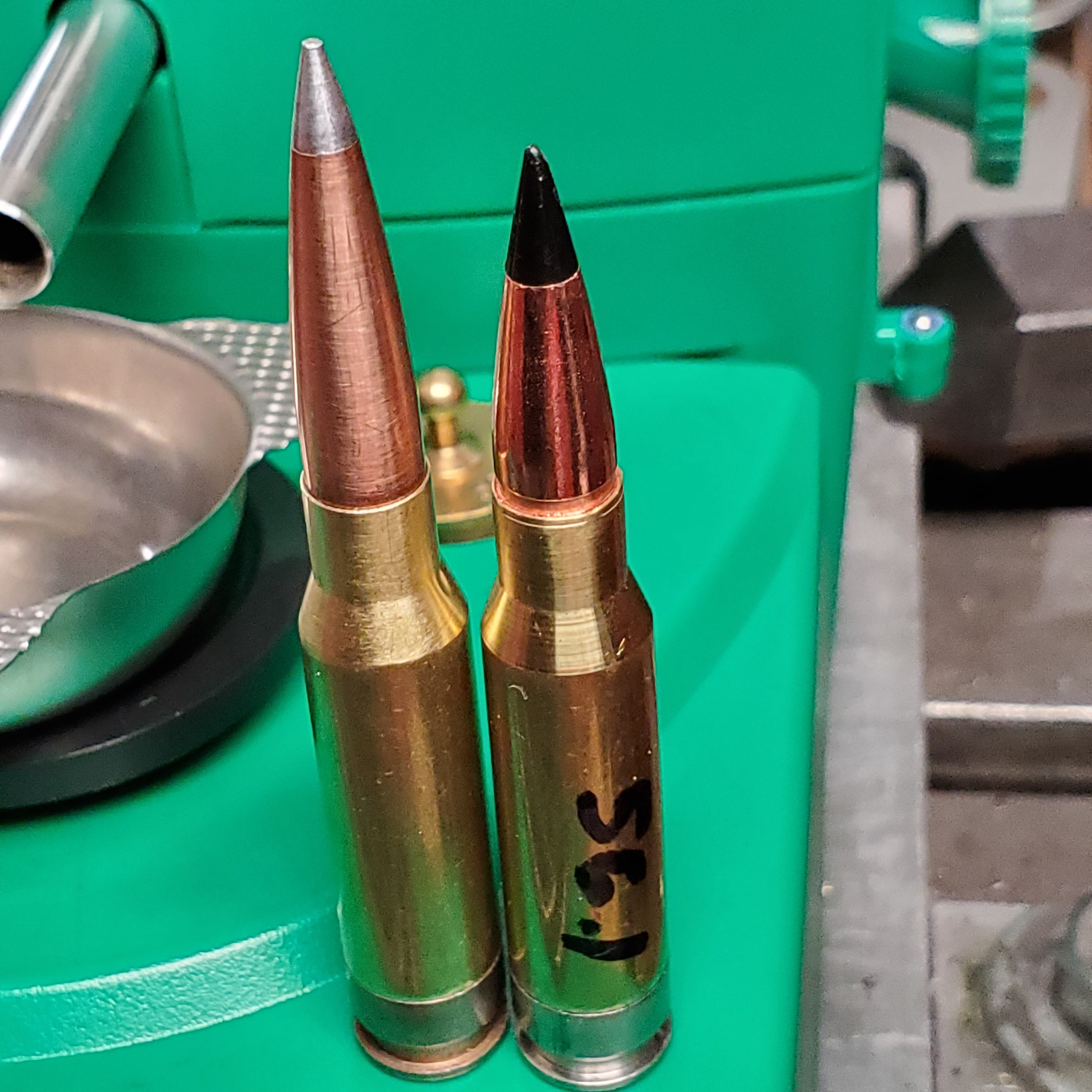 I neck turn in the lathe...I cut a sharper radius to relieve the thicker metal problem in this area, and the whole angle.