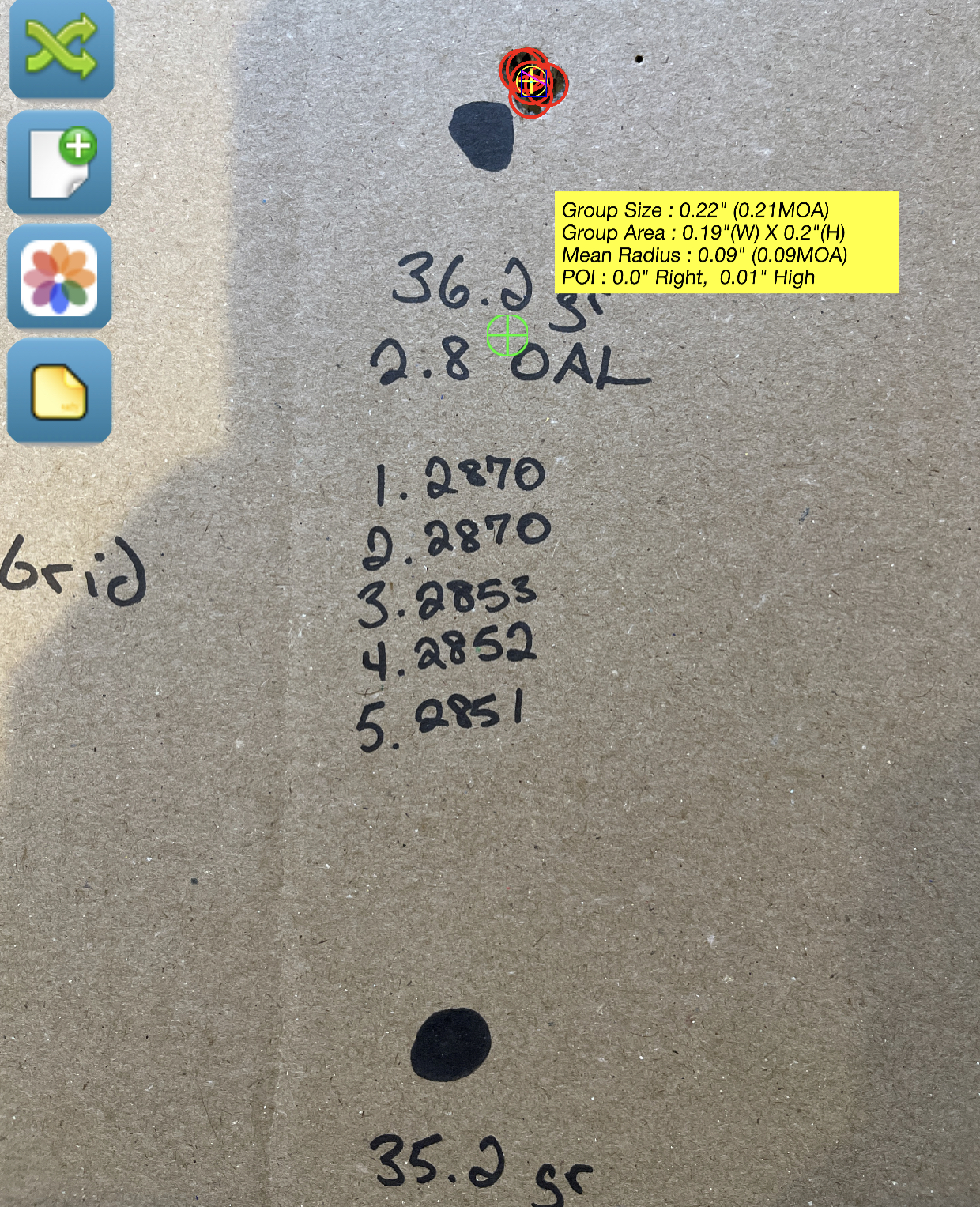 after working up a median round of info I scavenged from the internet and some test shots, I found a round it likes.