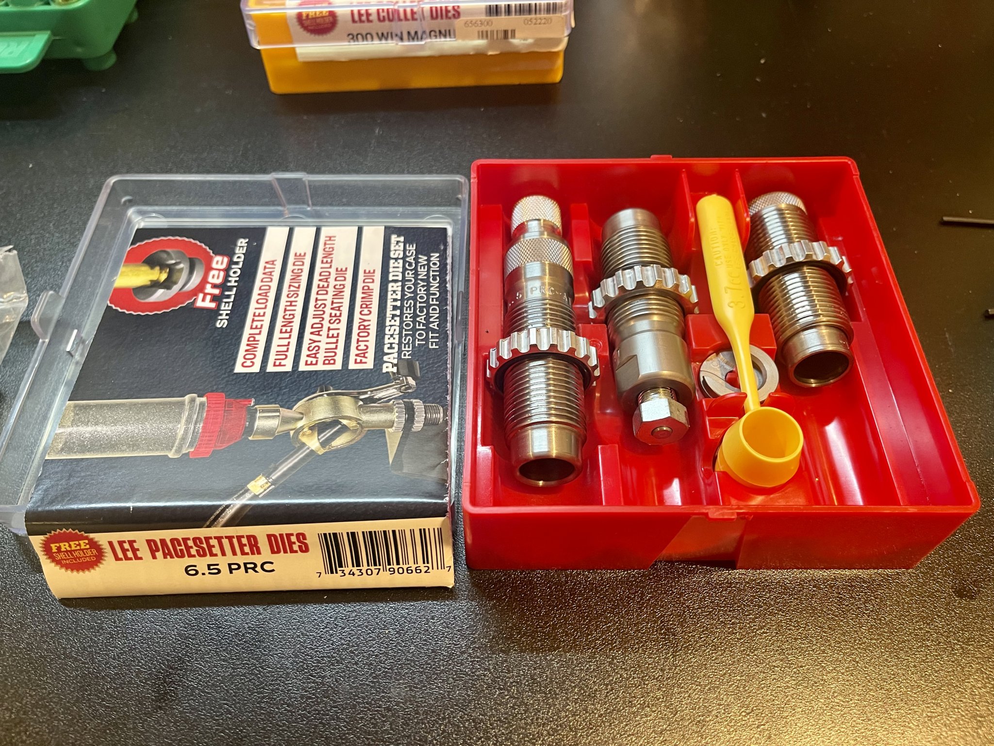 -Set of Lee Pacesetter 6.5 PRC dies, 3 die set. Includes everything, as it would if they were new. Only used the seating die for 70 rounds. $old