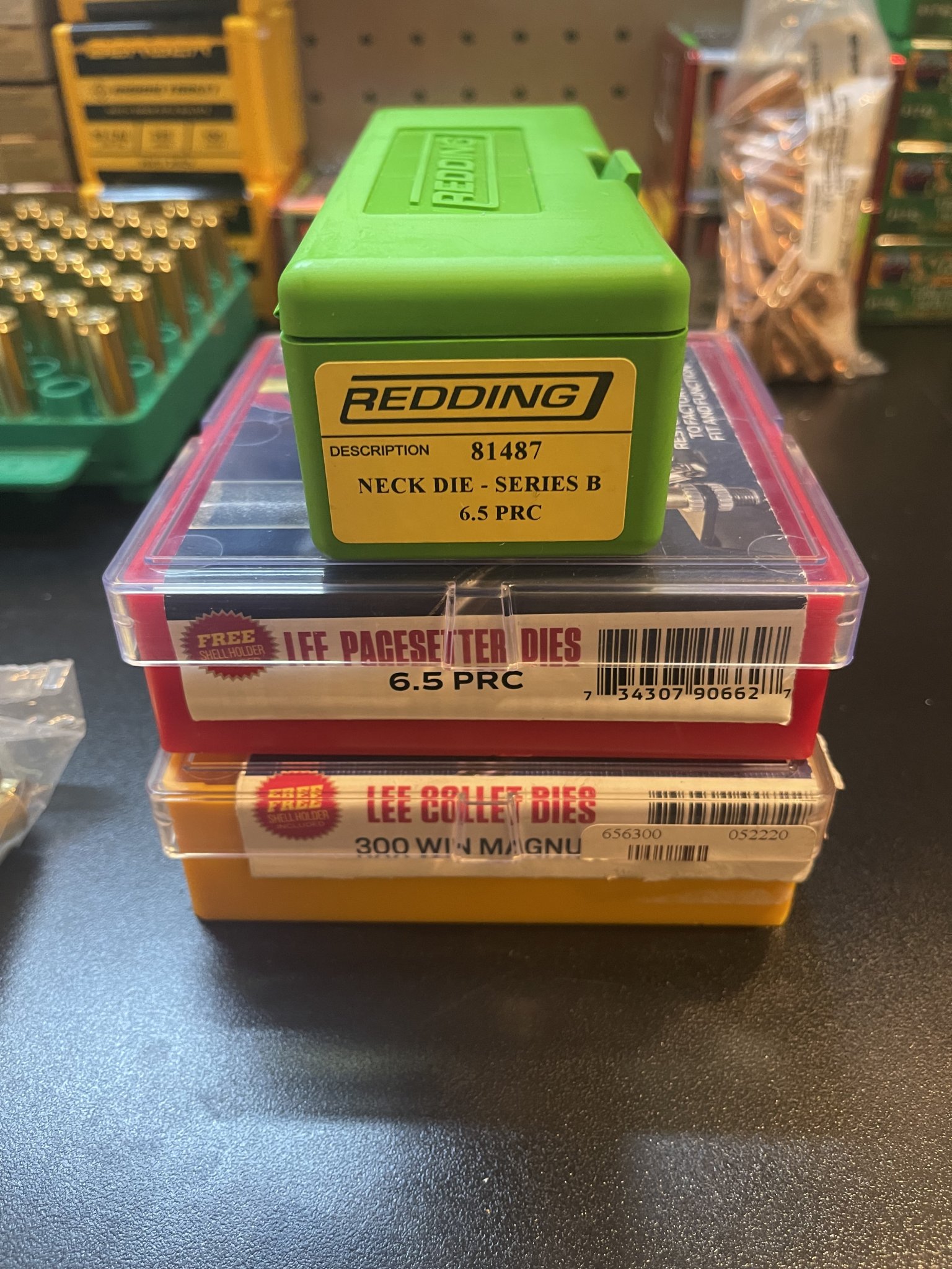 -Redding series B 6.5 PRC neck sizing die. Brand new, never used. $old ($100 for the neck die and Lee dies together).