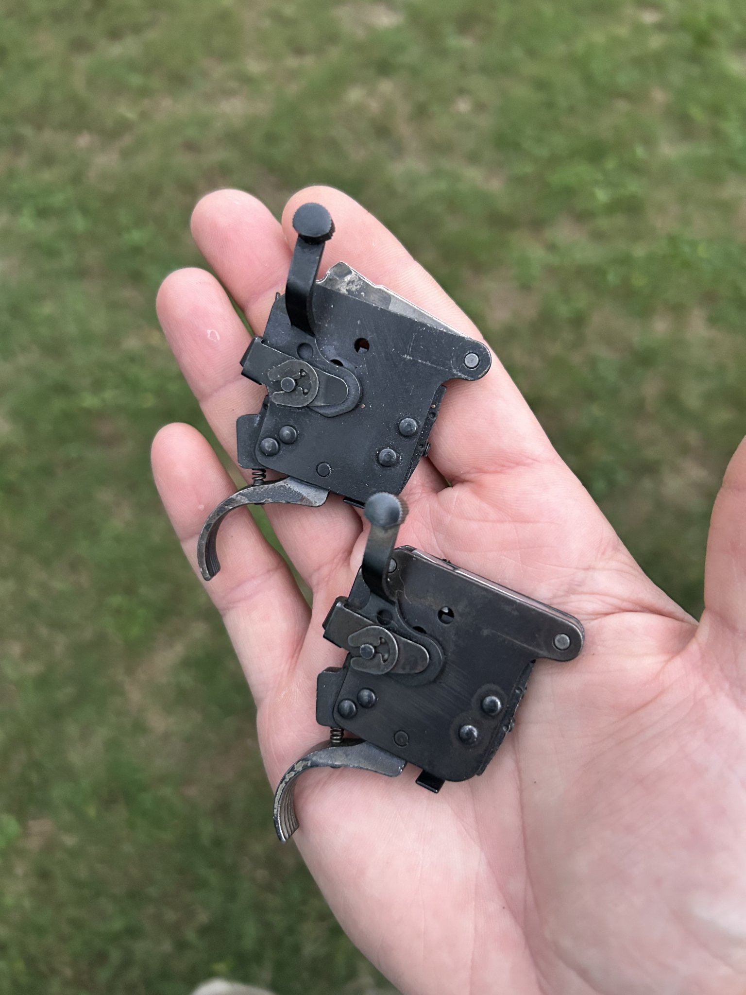 Couple surplus triggers. Complete with sear and spring. One only has the one slave pin.