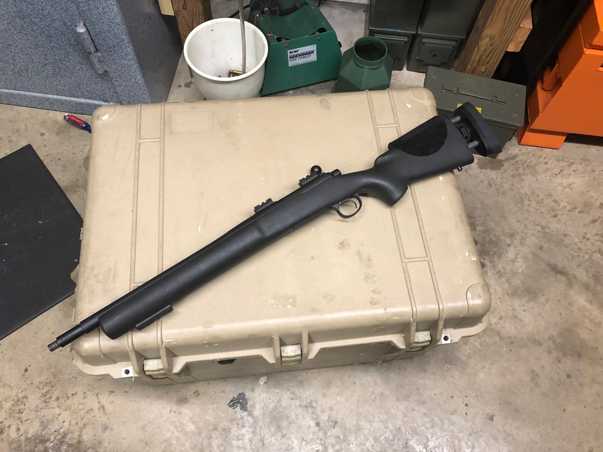I have a 700 Tactical with a 16" threaded barrel and adjustable HS Precision Stock. Bolt handle is a PTG and the rifle has been KG Gun Koted. Stock has been bedded. Only trade I would consider would be for a .223 700 Varmint BDL or very similar. Nightforce Base is not included.