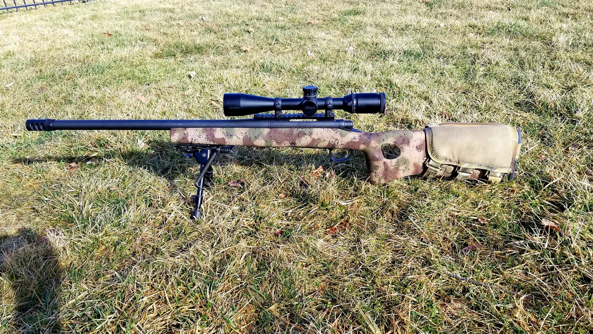 Remington AAC SD 308 , 20" barrel with an APA Little Bastard brake, Magpul folder chassis with magazine, 20 moa rail, Nikon M- 308 4-16 scope in Burris Signature rings with inserts, TriggerTech straight blade trigger. 1.5 lb trigger pull.