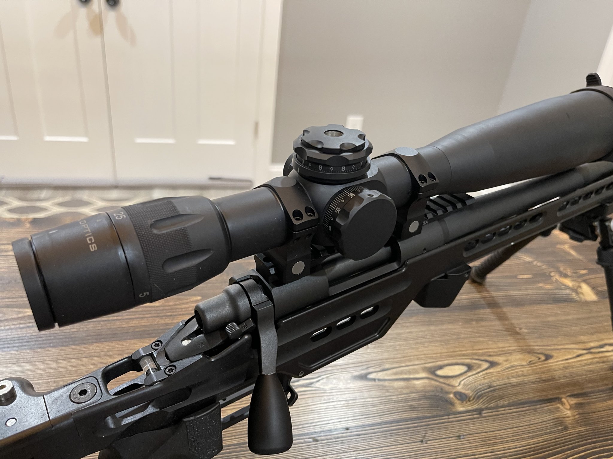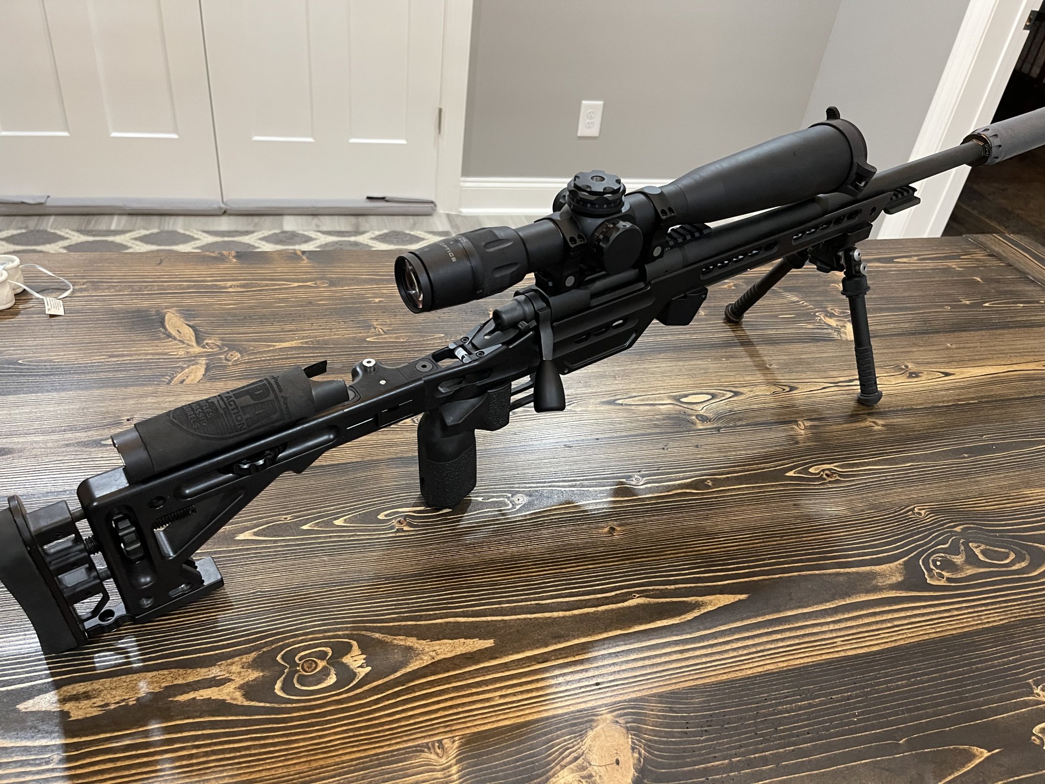 US Optics B-25 5-25X with H59. Illuminated blue reticle in nightforce rings. 20moa rail. Remington 700 action and receiver. 20” threaded bull barrel in a MPA hybrid foldable chasis. MPA Spigot at end of rail. Internal arca rail built in. Adjustable cheek riser and length of pull. Badger ordnance bolt knob. Area 419 barricade stop. Comes with two 10rd mags. Scope will have two adm scope covers. I have box and docs for scope.