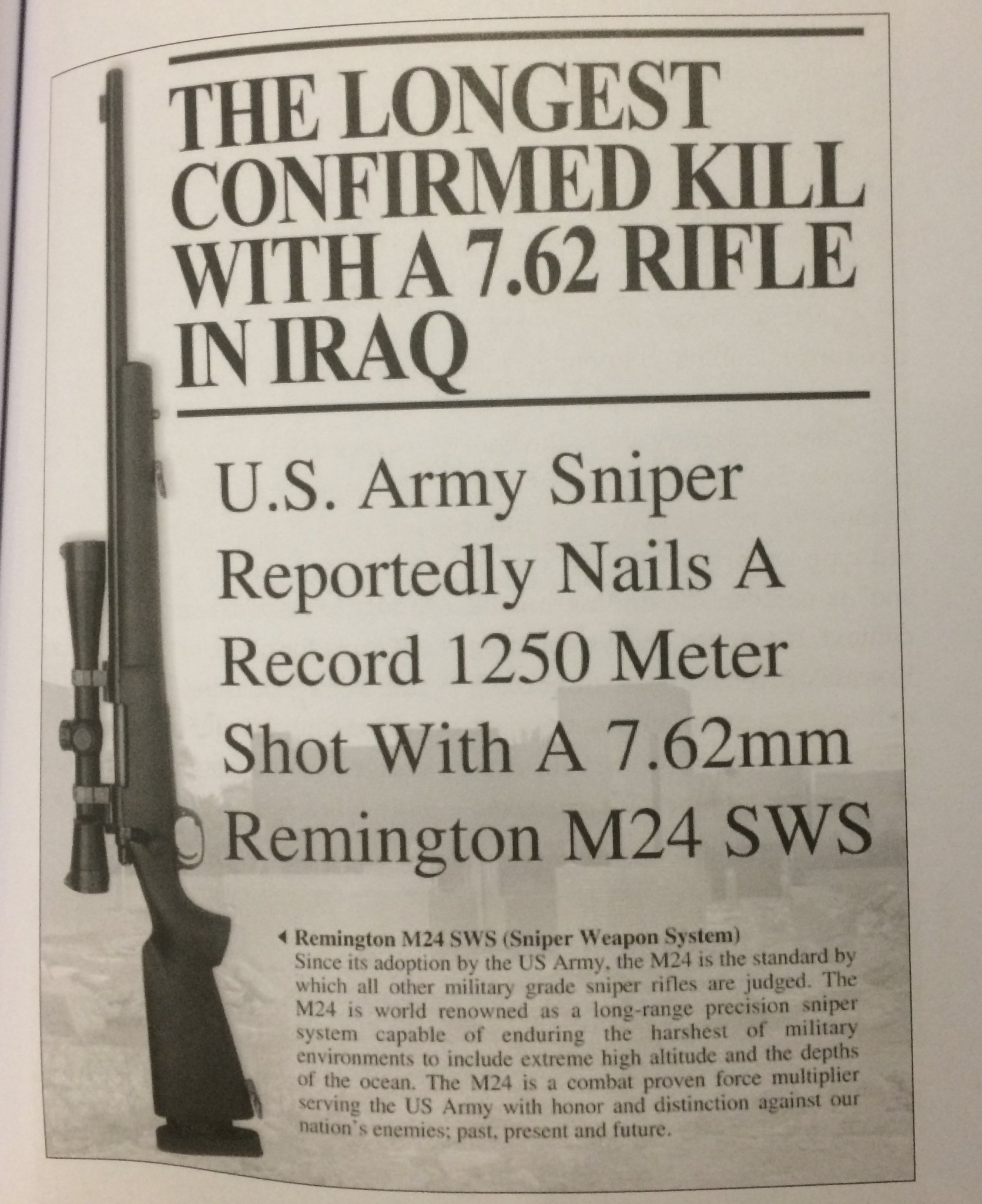 I have actually been very critical of the AIAT when comparing them to custom builds but that is mainly directed at the cult-like fan base of AI rifles. But if we're going to compare it to the next evolution of a Vietnam era sniper rifle, I have to agree with the fan base. When we received the INOD Block 2( PVS 22, McCann rail, and M3LR) guys had to tape cut outs from a foam sleeping pad to their stocks. We would stuff 4 rounds into the top of our boots to reload on the clock for a 10rd, 60sec rapid fire sitting sling supported qualification. I screwed a Manfrotto camera shoe into the bottom of my stock so I could mount my rifle on a tripod. My instructor gun had the rare privilege of an HS Precision stock with an adjustable comb as a T&E. One guy had a Badger EFR. I also got one of the committees three Schmidt and Bender 4x16 single turn turret H27 reticle T&E scopes. That was a sup'd up M24. And we still didn't have a detachable mag. Their were a few M24A2's out there floating around. They essentially had the newer HS Prec stock with adjustable comb and LOP and DBM kit. But it was a day late, dollar short. I had the rare privilege to work with one of the guys that helped sell the Army on the M24 back in the 80's. He sniped on the Ho Chi Minh trail. He helped stand up the sniper school I worked at as an Instructor. That should tell you about the age of the M24. It was born of Vietnam experience. Thats not a put down. But that technology just isn't going to compare to an AI AT or a modern rifle. This is not a shooting rifle purchase. This is a hang on the wall nostalgia purchase.