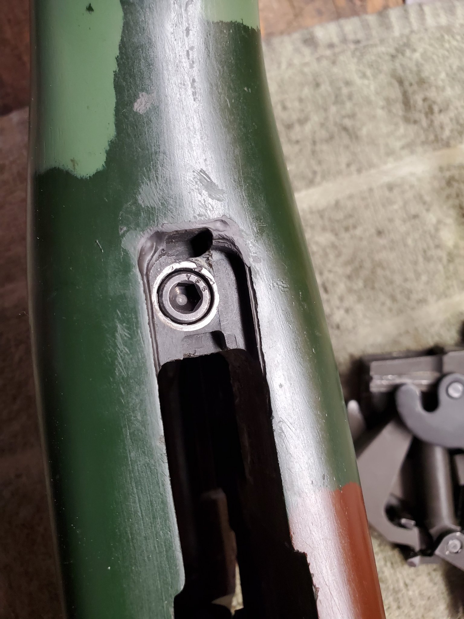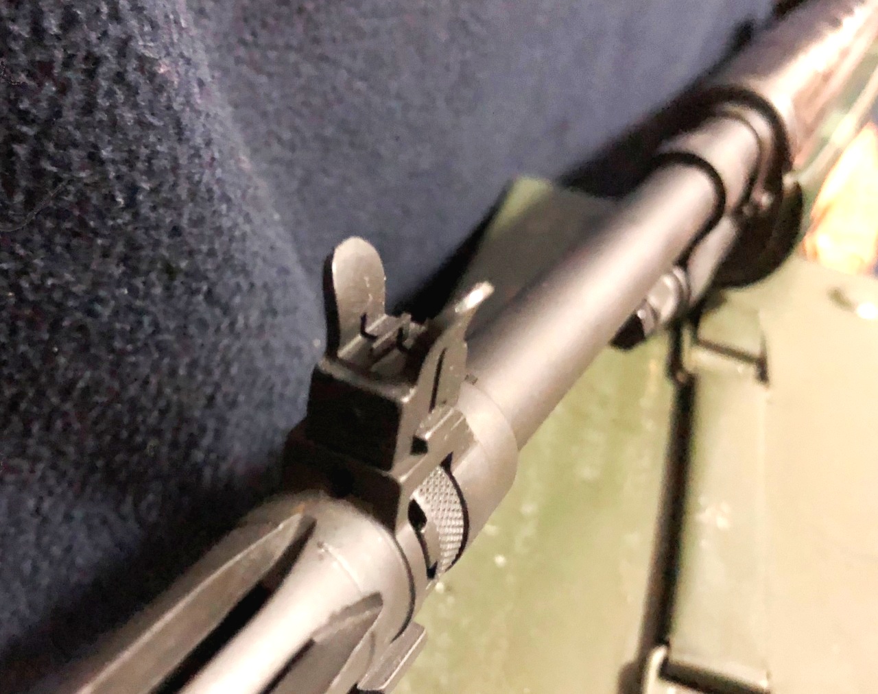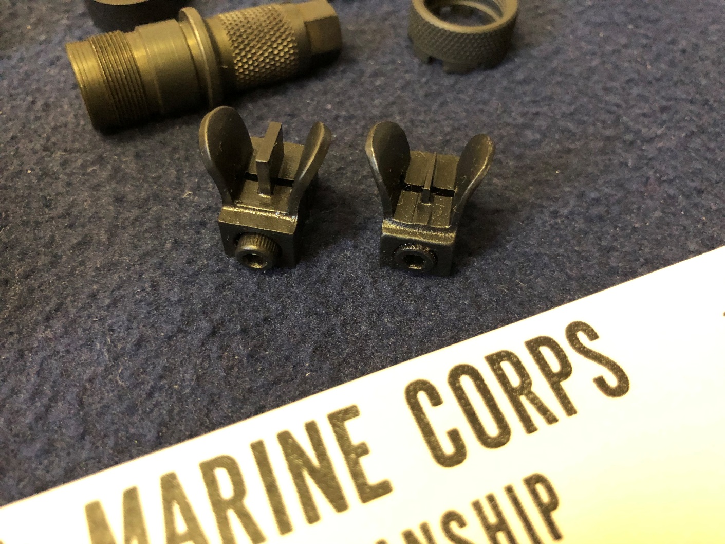 I should also note that most USMC match M14 barrels were typically 1:12 twist, and the other interesting thing about this “REV 1” barrel is that the twist rate is 1:10. I understand that some of these barrels might have been used for certain long-range/1000 yard events. Note: This build has a USMC take-off front sight that was filed back in the day to be very thin (0.031”) and very short, reportedly these modified sights were used on their 1000 yard M14s.