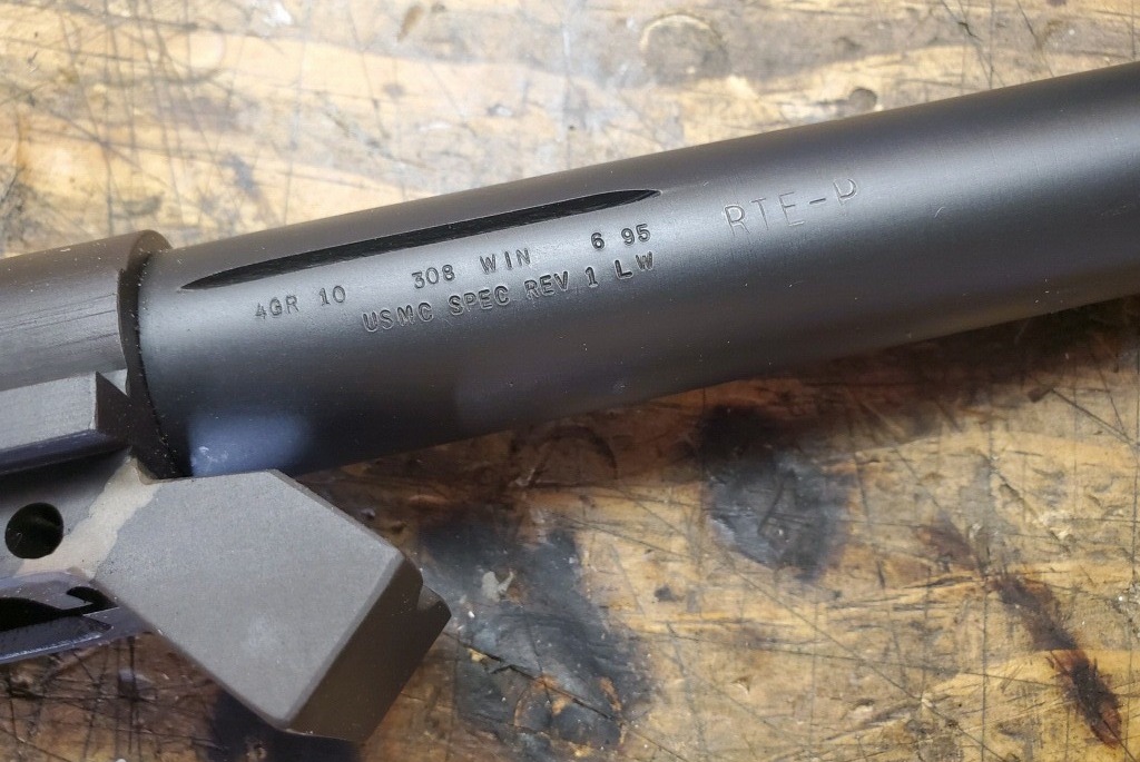 Fwiw, this project started with just a 1995 Gene Barnett heavy profile match barrel that was made specifically for the USMC shooting team. The barrel was NOS/never chambered, and is marked “USMC REV 1”. I was told by a retired USMC 2112 that the “REV 1” barrels were unique in that they lacked a gas port hole for the gas cylinder, and the shoulder surface where the gas cylinder mates with the stock ferrule was pushed forward ~ 0.001”. This reportedly allowed the USMC precision armorers to pre-fit the gas cylinder and gas cylinder lock for ideal timing without the need to use shims between the gas cylinder and the barrel’s mating shoulder. Once the gas cylinder/gas cylinder lock was pre-fitted, the barrel was then marked for the gas port hole and subsequently drilled in the ideal location.