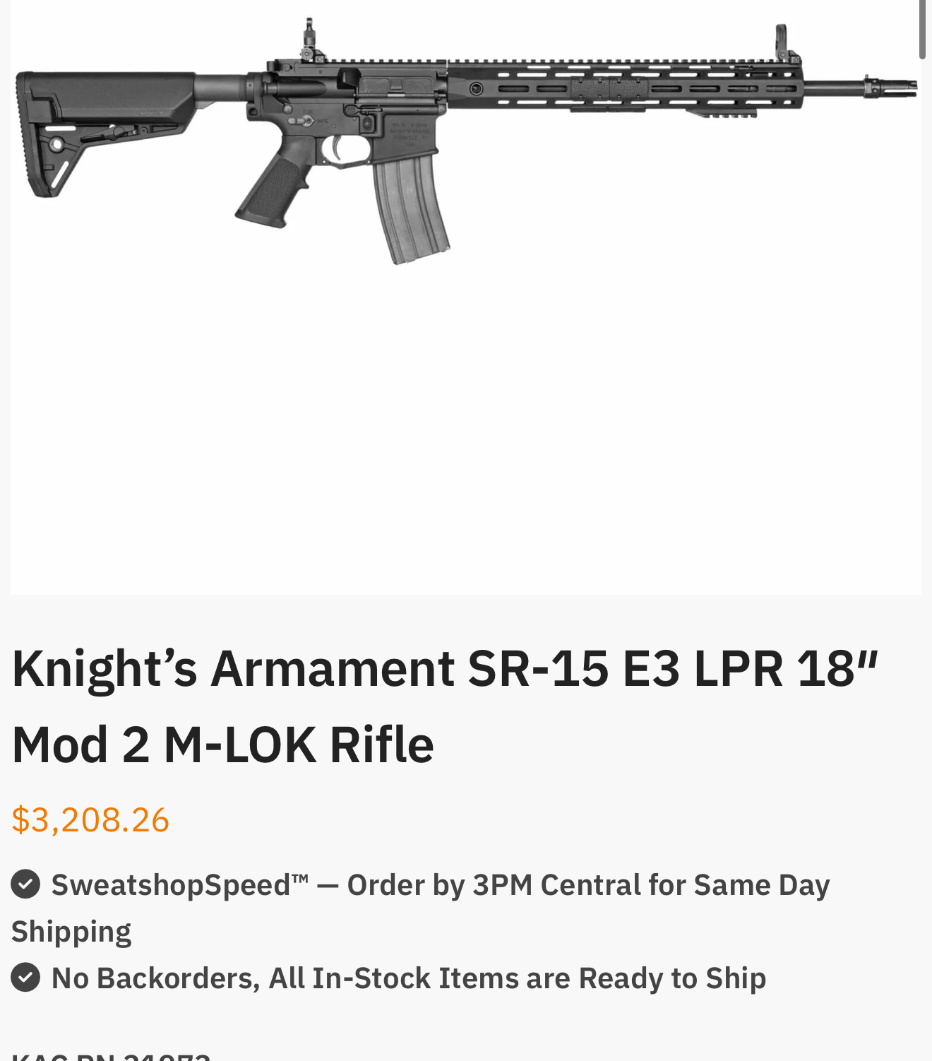 Ya, fair. I definitely don't mean a Knights gun. I have a lot of experience shooting SR25 's (that I didn't pay for) and I wouldn't waste my own money on one. In the context of a military contract gun, I understand what makes them significant, even if they failed in that area pretty often as the M110. For what I want to do outside of the military, I don't think they compare to a custom built Seekins or Ridgeline...15-LPR.Idk I always called it a RD15. And jeebus I remember when those knight uppers were $1800