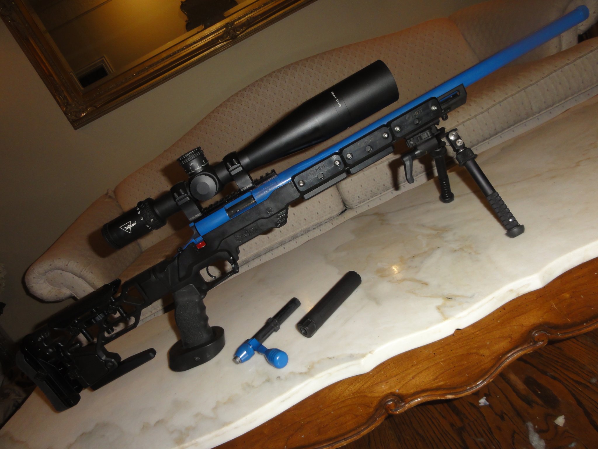Rifle is exactly 50.25" long and from grip to scope cap is 12.5"