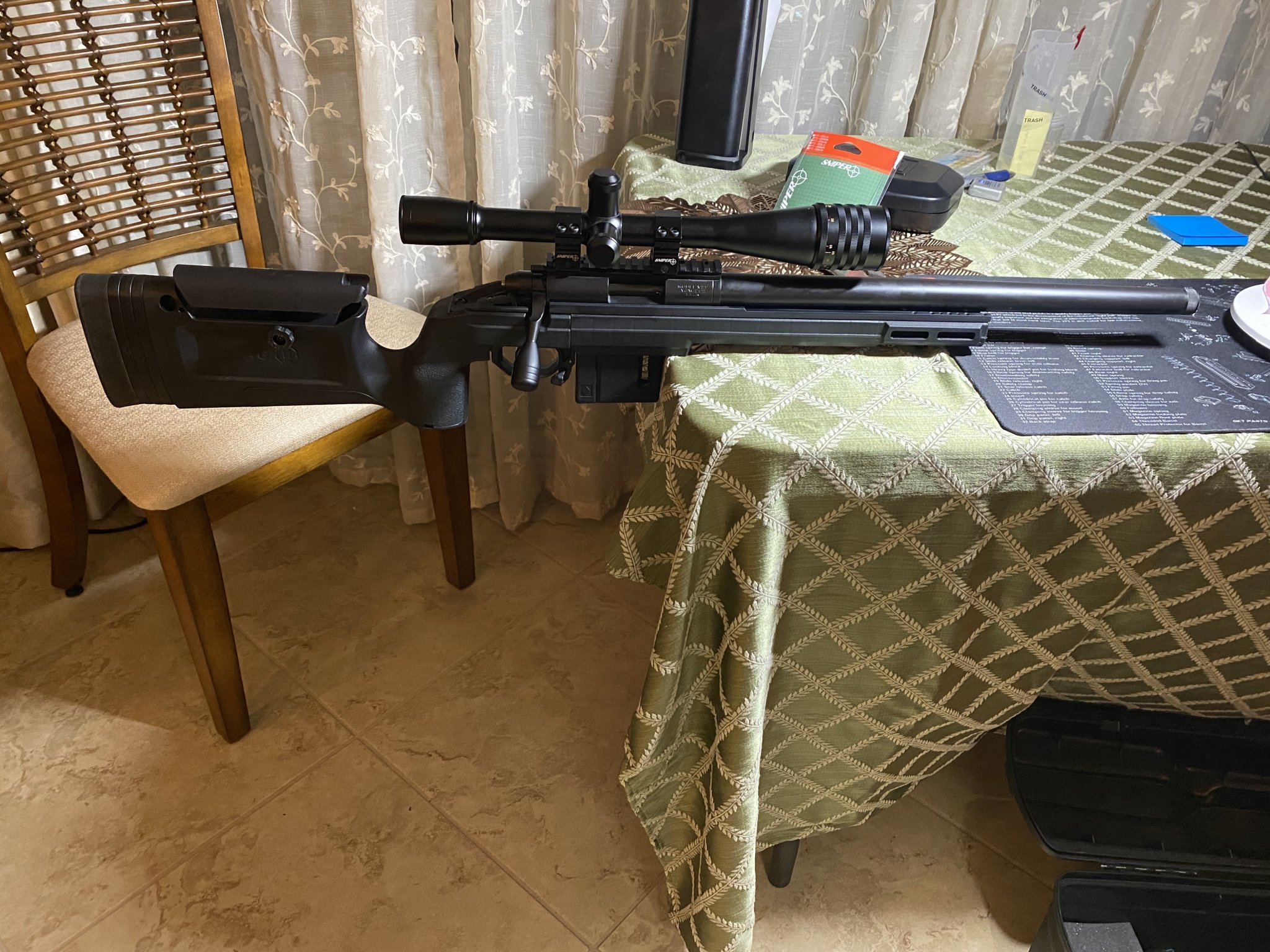 I just picked up this 54 match and she is lots of fun to shoot. I put a Trijicon 5-50X on her. The normal trigger pull is 5.6 oz.
