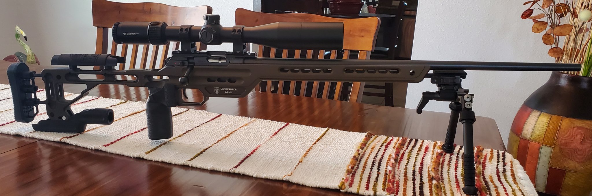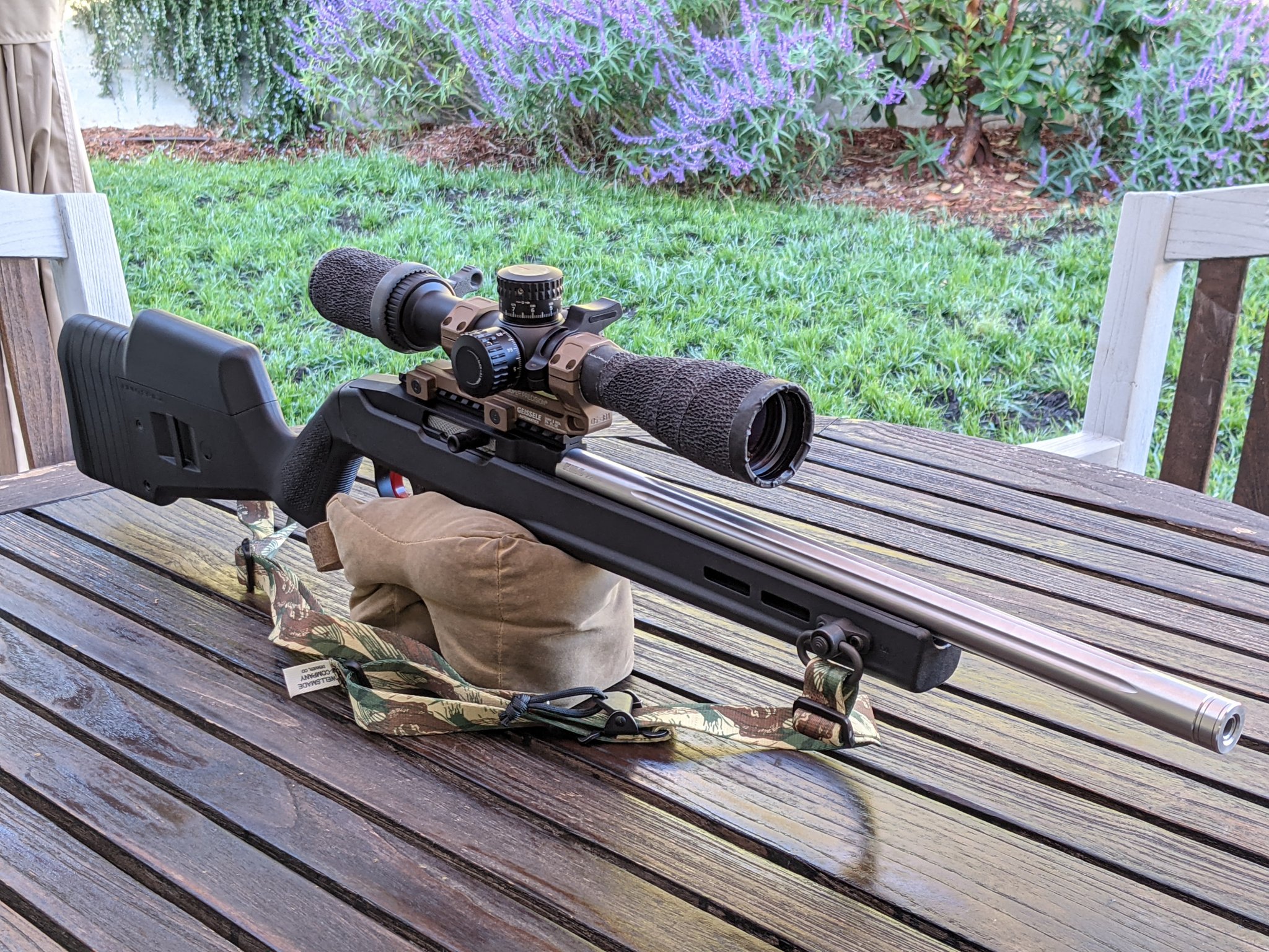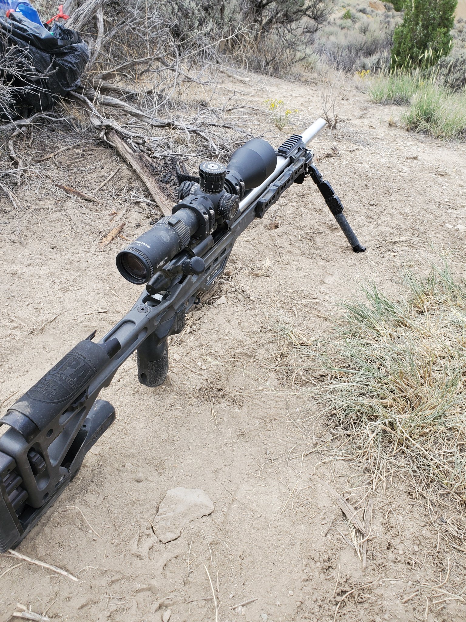Christensen Arms Ranger 22 - 100% factory, other than I adjusted the trigger down as low as possible, and installed a Vortex Viper HS 6-24x50 scope in Seekins Precision 30mm Low rings...And my Dead Air Mask HD suppressor.