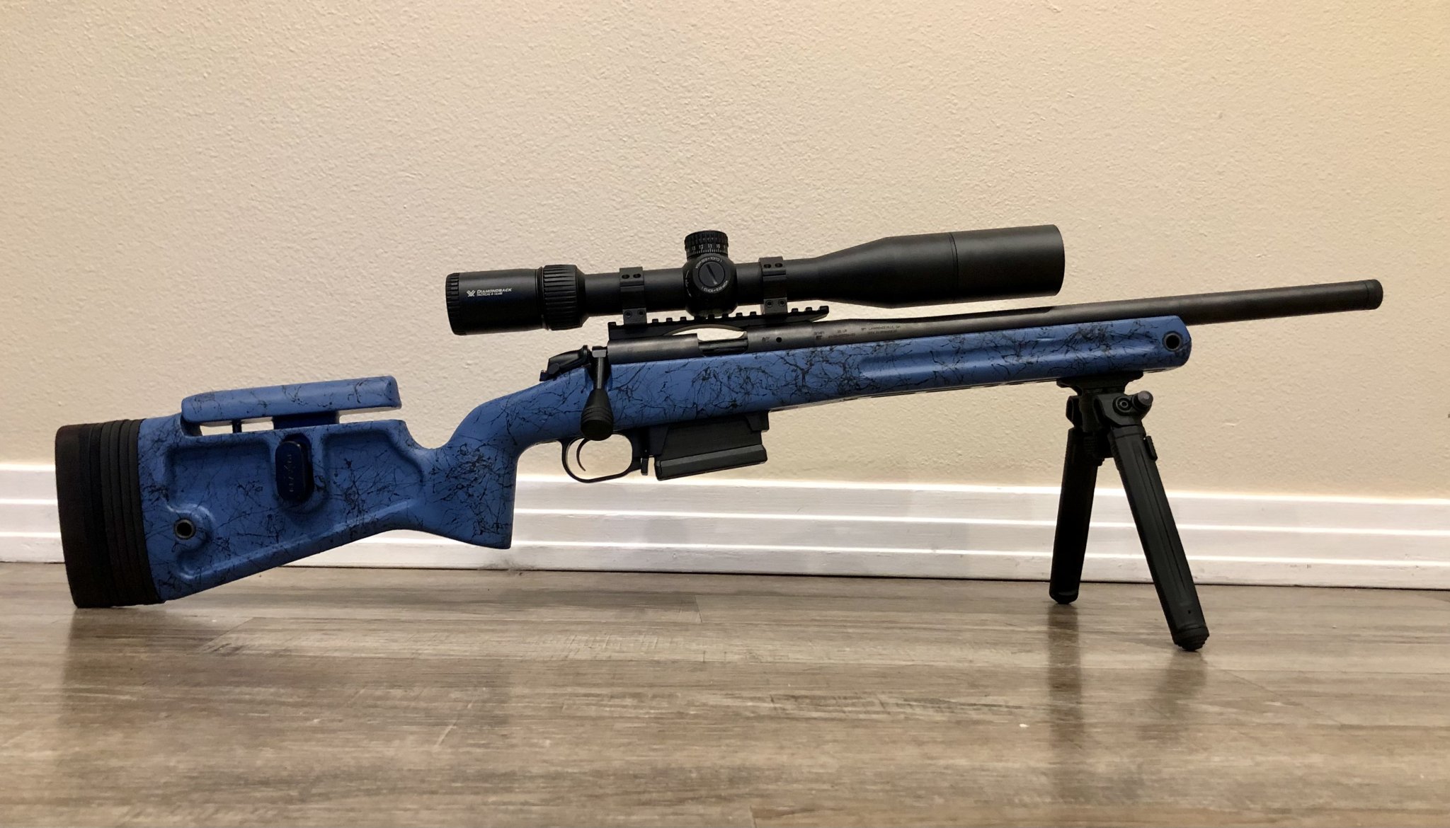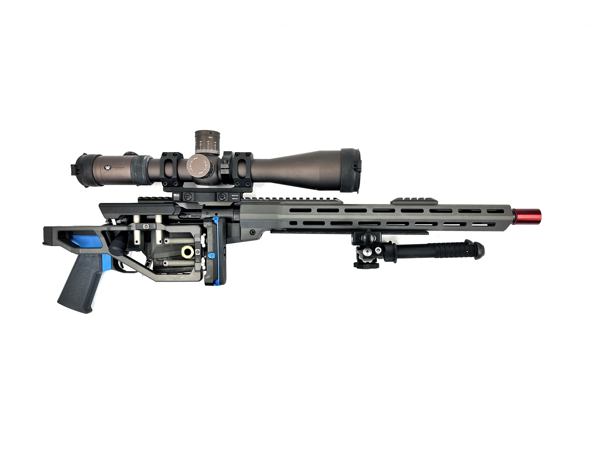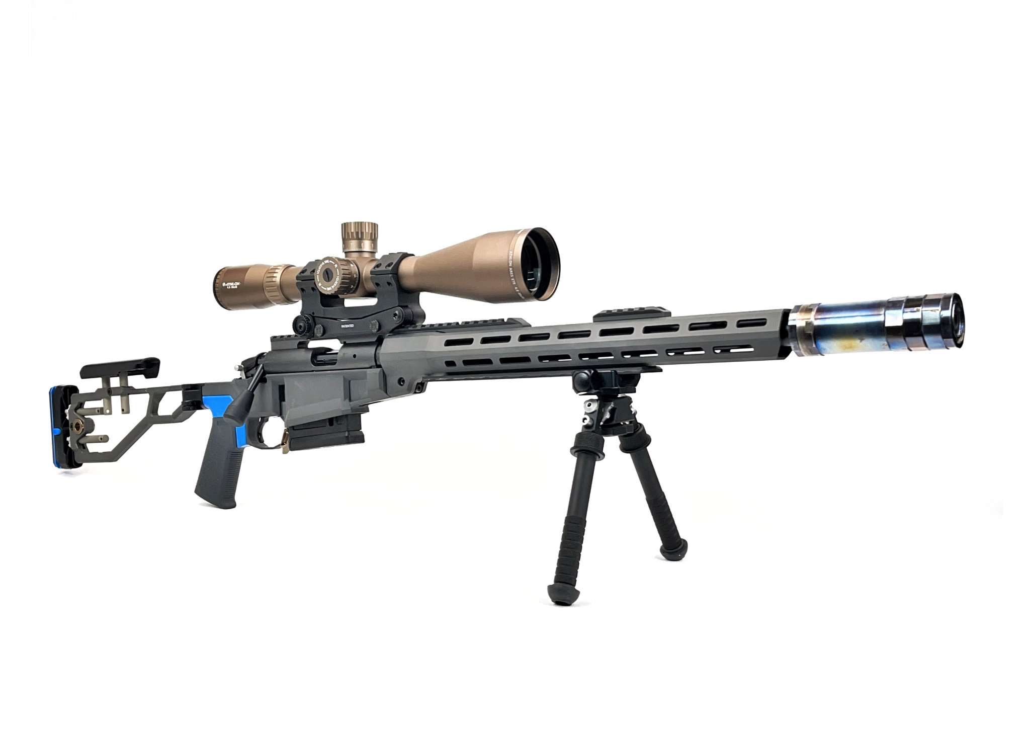 Desert Precision Gunworks Rim X. 25” 1.20” straight taper, Muller Works 8 groove 1:16. Nevius Custom chamber. Vortex Gen 3. Trigger Tech Diamond. Spuhr Mount. MDT ACC Elite and an Accu-Tac WB-4. Weighs in at 19.5lbs with the bipod and 18.3lbs without bipod. Balances 2” in front of mag well with no weights.Craig Brown: Can you give us details on your build ? What barrel is this ?