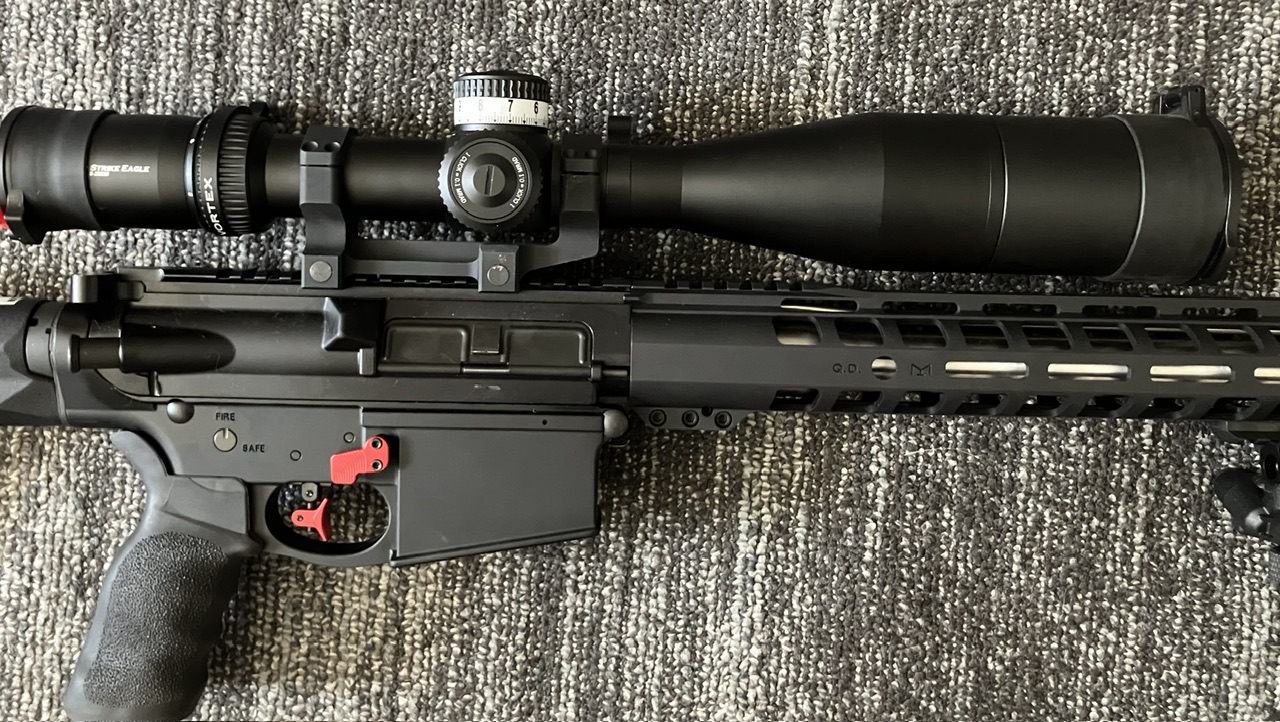 Hi. Yes that is the rifle as I will mainly be shooting from a tripod as below ...it's a cross over gun hunting/range/SHTF . Lots of adjustments to make it fit as an extension of the body. Only concerned with it clearing the rail and the additional 20 MOA on the mount. 20-30 MOA is good for this scope as it packs a lot of magnification in a small package and you will get IQ degradation at the outer limits of the magnification range. I would want to be looking through the centre of the lens as much as possible. It may seem a bit of overkill on the magnification for this rifle and therefore the problem with 64mm outside objective diameter but I want to clearly identify game at 1000 yrds and see groupings at 500 yrds.