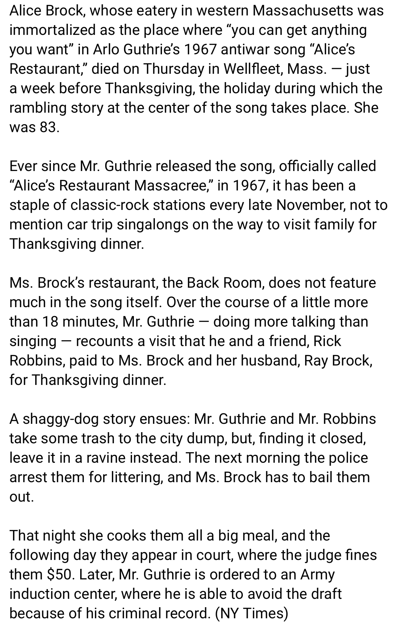 Interesting, I never knew that history and always thought the song was about Alice's in CA. The restaurant is cool but the real appeal are the epic roads to ride to get there. The lot is always full of cool bikes and cars.