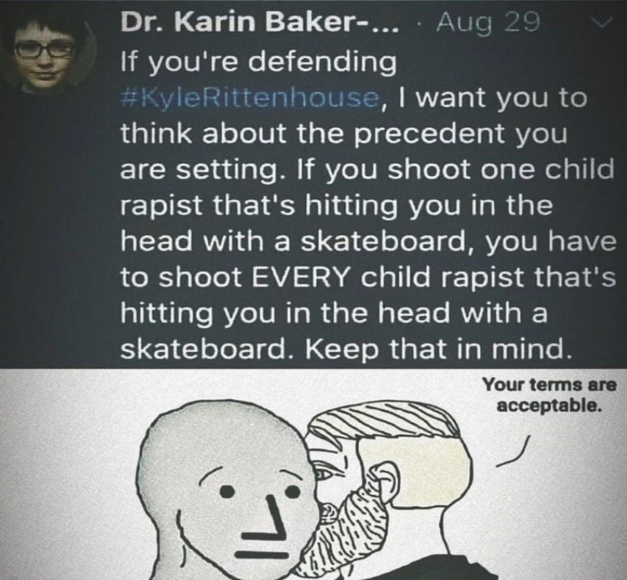 I didn't say he should take it, I just said that the prosecution could and probably is offering one still despite the trial coming to a close. You got an 18yr kid staring down 20+ years behind bars in a worst case scenario. I could easily see him be scared into taking a short sentence just to have the entire ordeal done and over with. Like I said, he has a shit ton of ammo for appeal and the smart move is not to take any deal, but that might not be what's going through his head.Even if the government could offer a plea, they would only do so if they didn’t think they could win. What’s up with you guys an plea deals? Pleas are admissions of guilt, and almost impossible to reverse on appeal. If the kids gets a weapon charge and a slap on the pee pee for driving without a license it’s still no win for state and nothing compared to going down for a fucking MURDER charge.